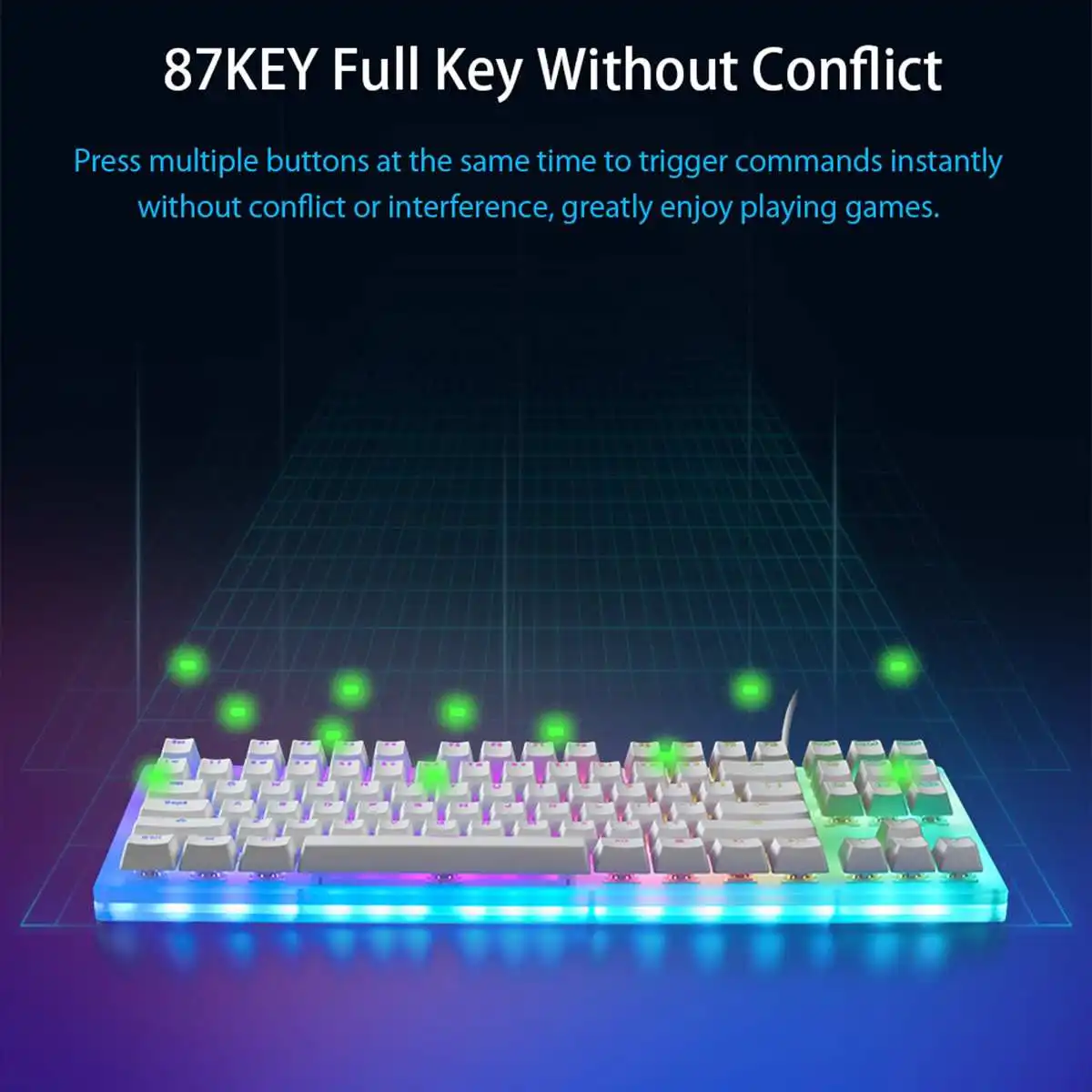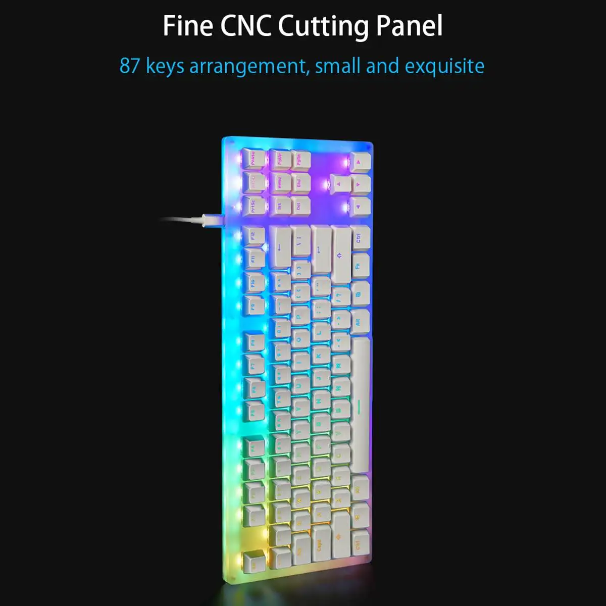 Особенности:◆ 87 клавиш механическая клавиатура, ПММА оргстекло материал 360 полная полупрозрачная застекленная панель, эффект фантазия светильник◆ 6 тематических световых эффектов. 16 миллионов цветов, шесть тематических световых эффектов, в общей сложности 18 классных световых эффектов◆ Тонкая режущая панель с ЧПУ, 87 клавиш клавиатура, маленькая и изысканная◆ Увеличьте пространство для хранения программ, светильник с эффектом памяти. Можно запомнить последний светильник, не нужно сбрасывать после отключения◆ 87 клавиш полный ключ без коллизии. Одновременно нажимайте несколько кнопок, чтобы мгновенно запускать команды без коллизии или помех, Наслаждайтесь игрой в игры◆ Полностью подключаемый переключатель клавиатуры, вилка и замена, переключатель «сделай сам»◆ Fn мультимедийная композитная функция. Включая ключевые комбинации, мультимедиа, управление освещением и другие функции◆ Механический переключатель Игрового уровня 5000 Вт. 50 миллионов срока службы, доступно четыре цвета