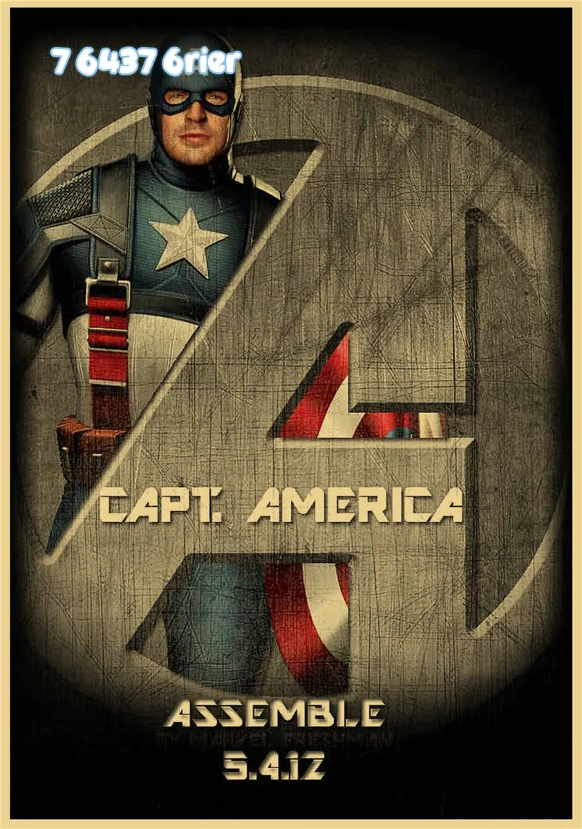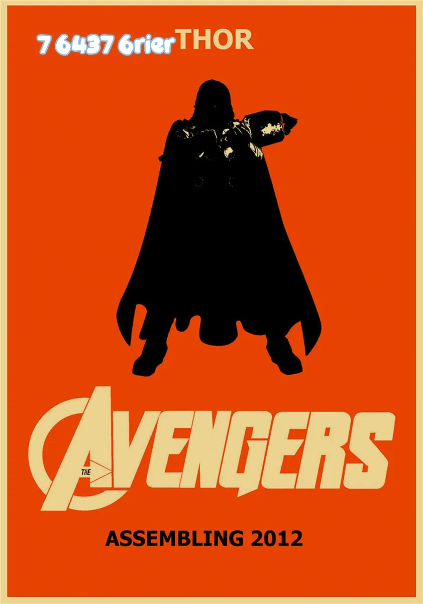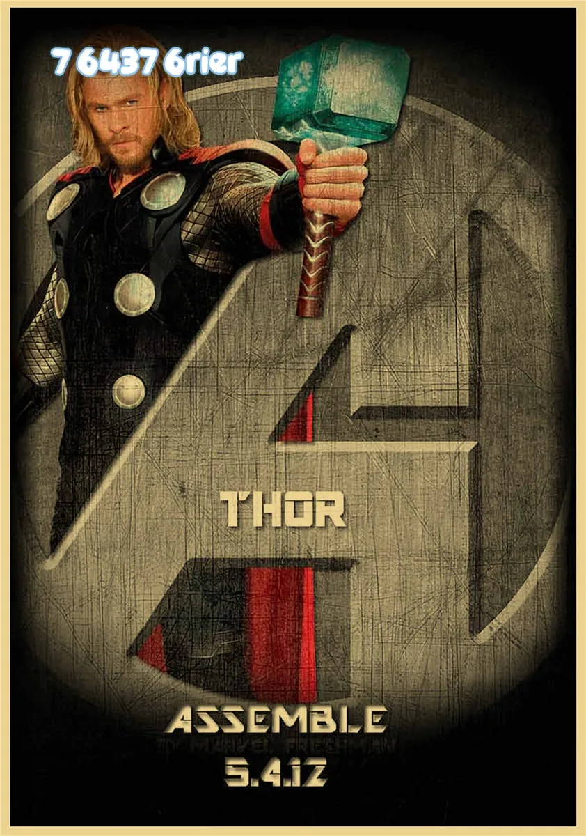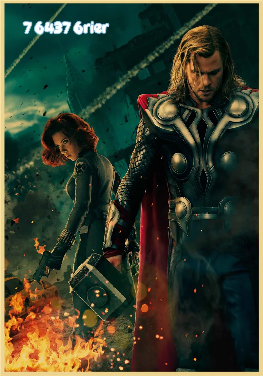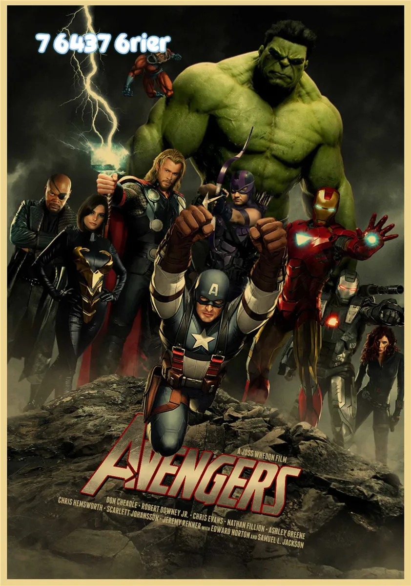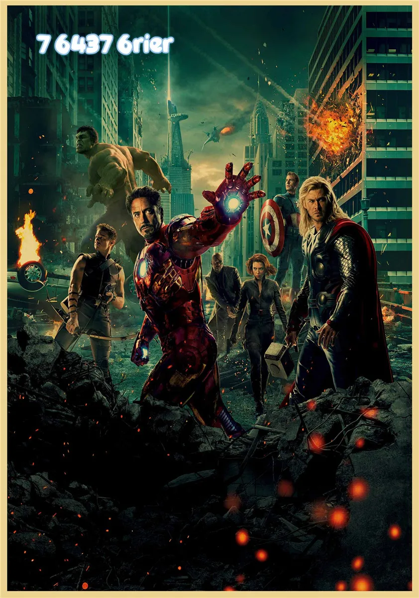 Ретро-постер из крафт-бумаги в старинном стиле, Супергерой Marvel, Мстители, Железный человек, Тор, Капитан Америка, бар, настенное украшение, наклейка на стену
