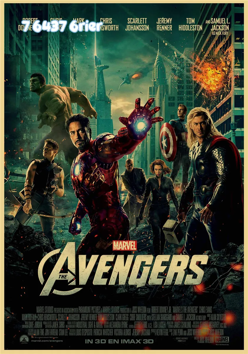 Серия супергероев Marvel, фильмы Мстители, ретро, постер из крафт-б...