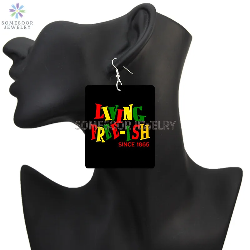 Деревянные серьги-подвески SOMESOOR Living Free-ish Black Изящные с 1865 года