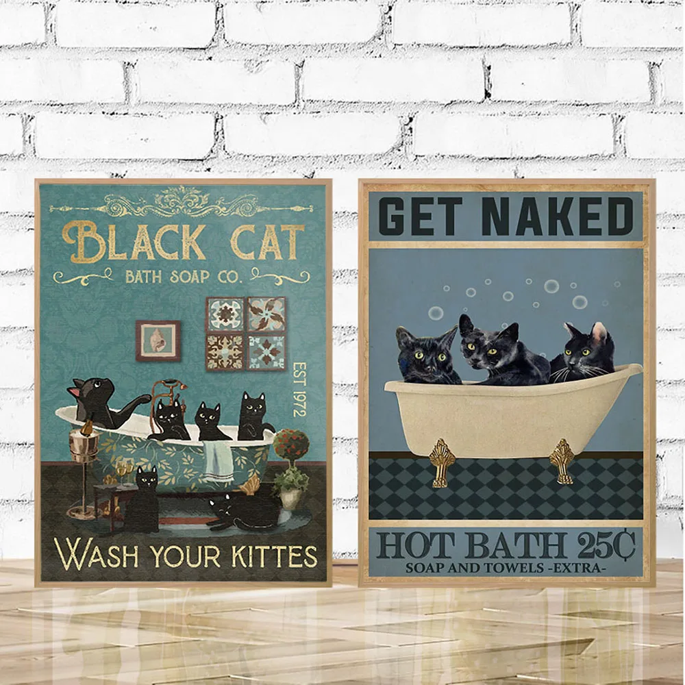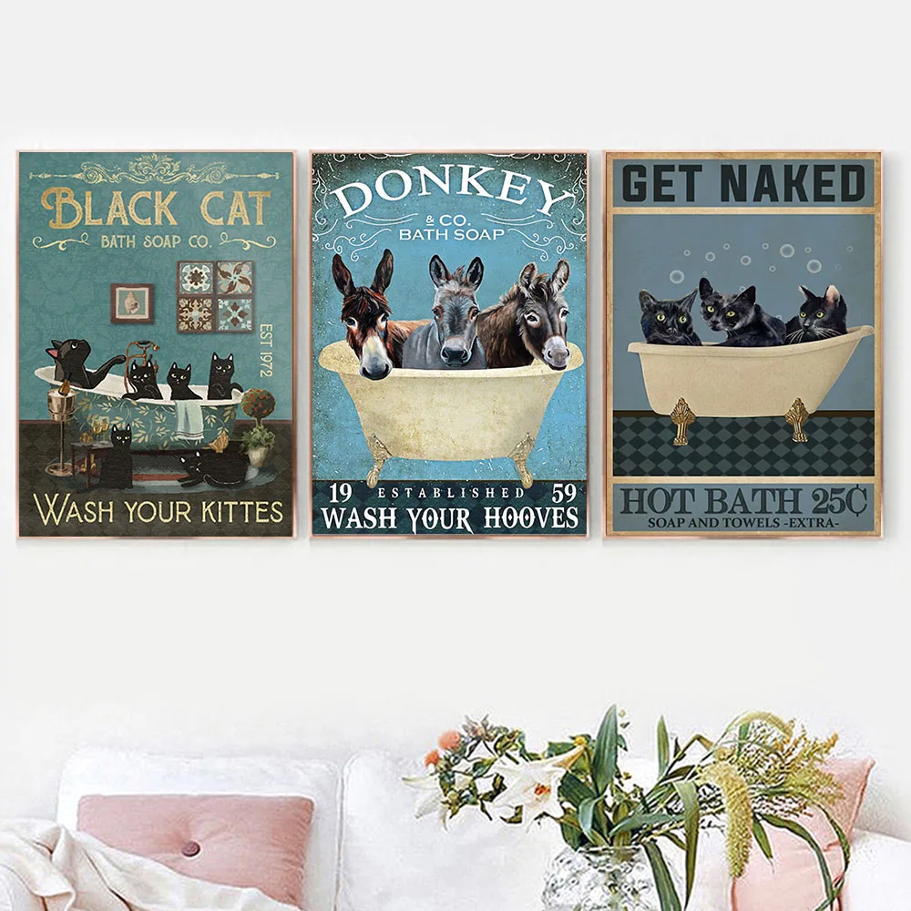 Плакат с черной кошкой, осликом, енотом, обнаженной женой, Настенная картина для ванной, туалета, холст, картины, комнатный Настенный декор, без рамки