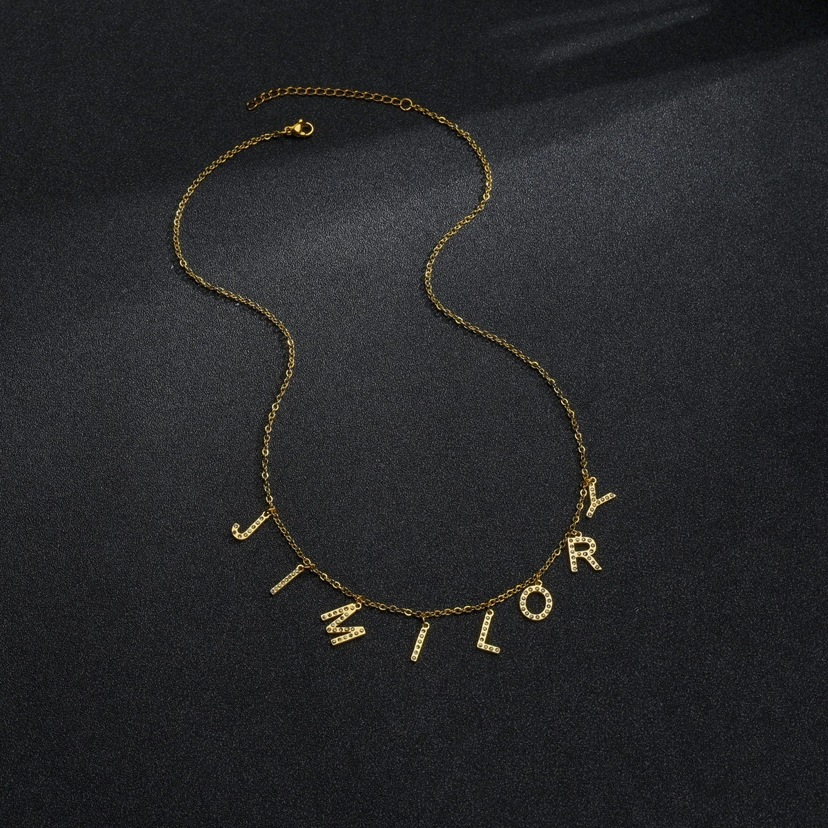 Goxijite 2021 пользовательские камень имя письма Чокеры для Для женщин Персонализированные Нержавеющаясталь Циркон Письмо имя ожерелья подарок