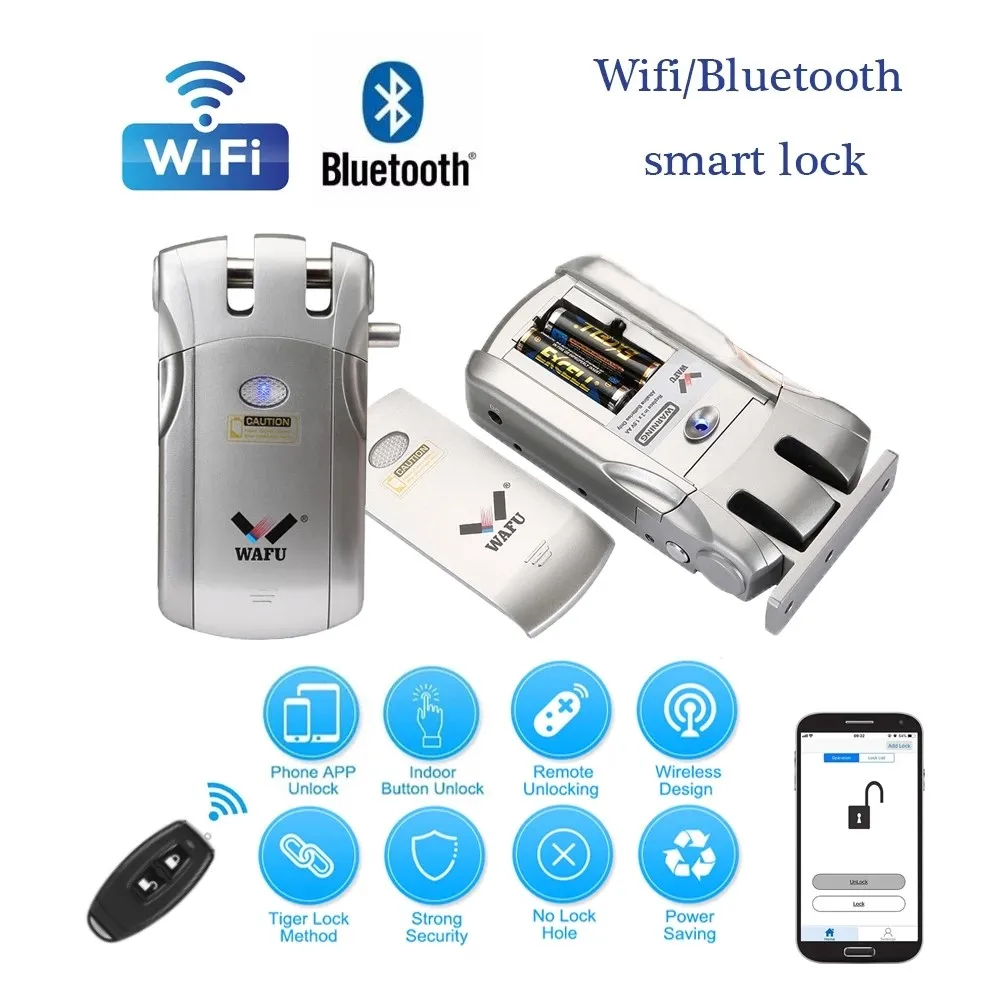 Беспроводной Wi-Fi Смарт-замок Wafu 019 с дистанционным управлением, BT электронный БЕСКЛЮЧЕВОЙ дверной Невидимый замок 433 МГц, телефонный контроль, блокировка по отпечатку пальца