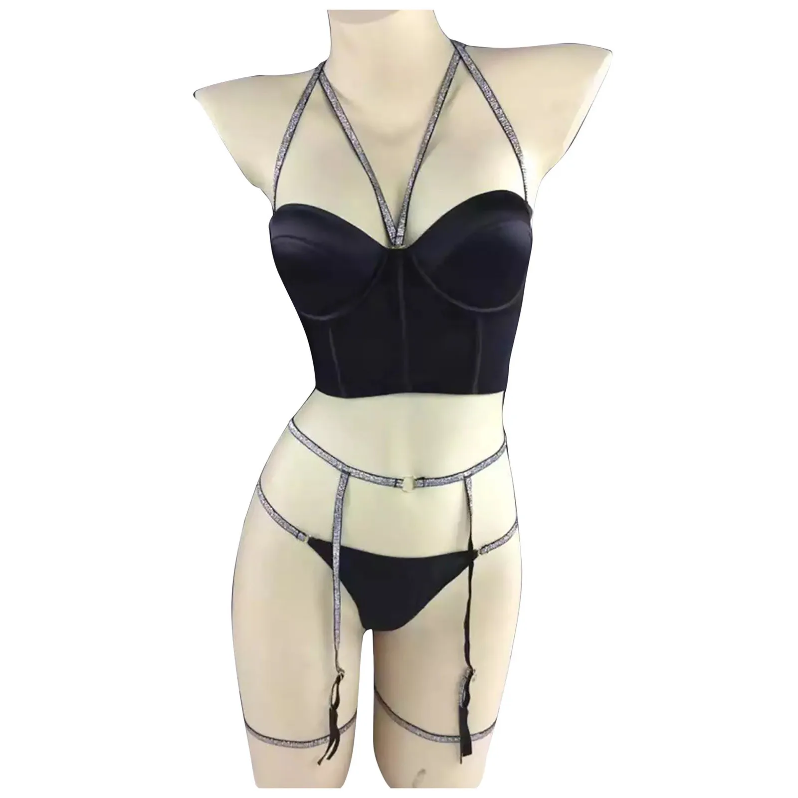 Дамское сексуальное кружевное блестящее бриллиантовое Трехточечное Дамское белье сексуальные пижамы