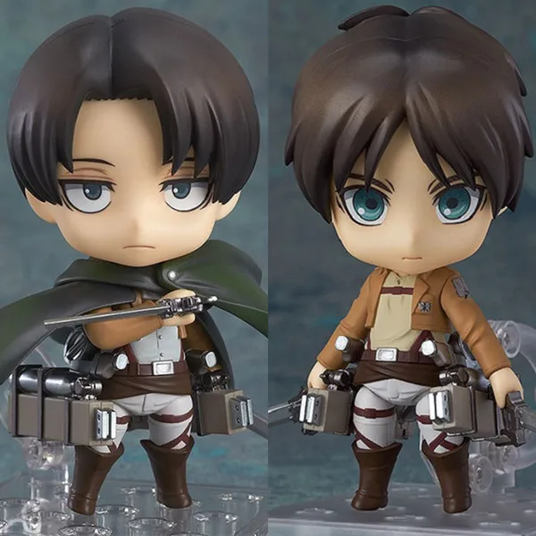 Фигурки из аниме атака на Титанов, симпатичная версия Леви Аккермана и Эрена джагера, Симпатичные ПВХ игрушки, модель, Детская кукла, бесплатная доставка