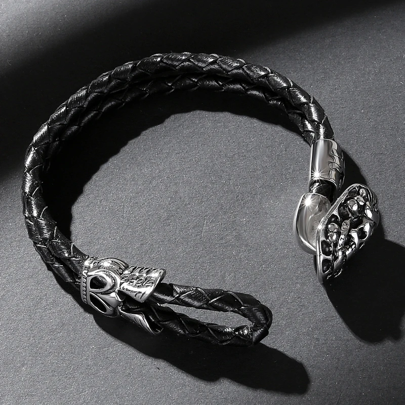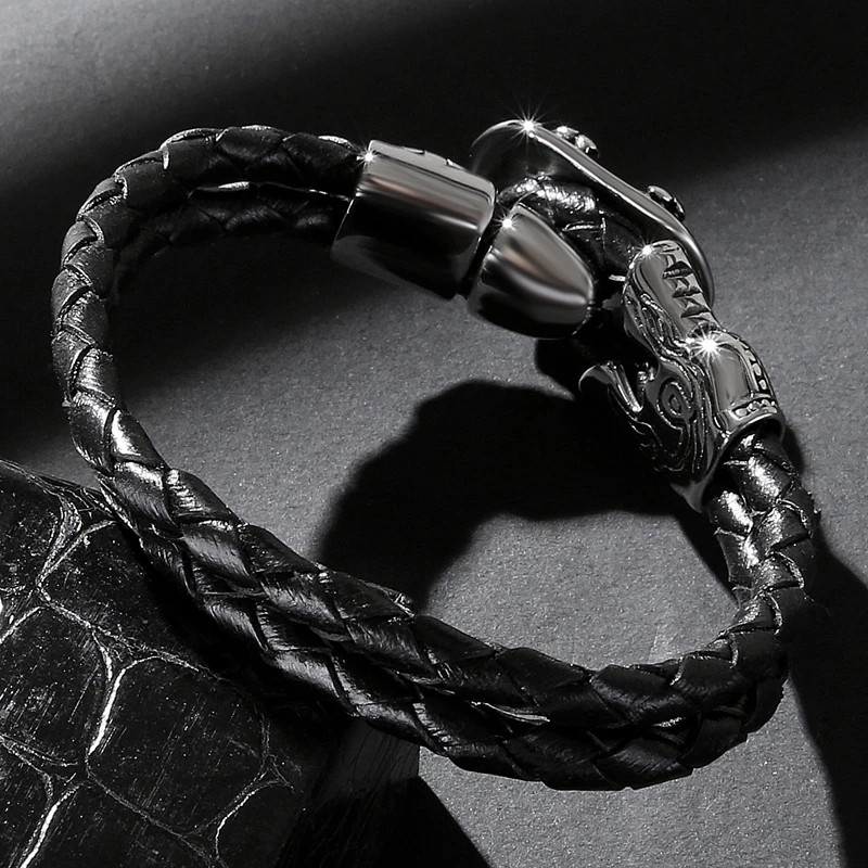 Мужской кожаный браслет в стиле панк-рок, из нержавеющей стали