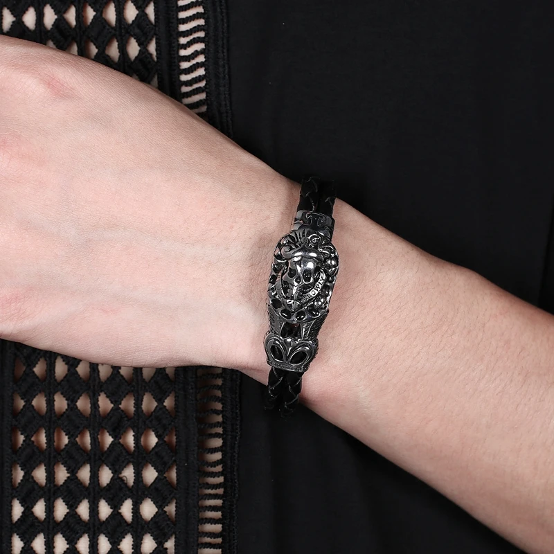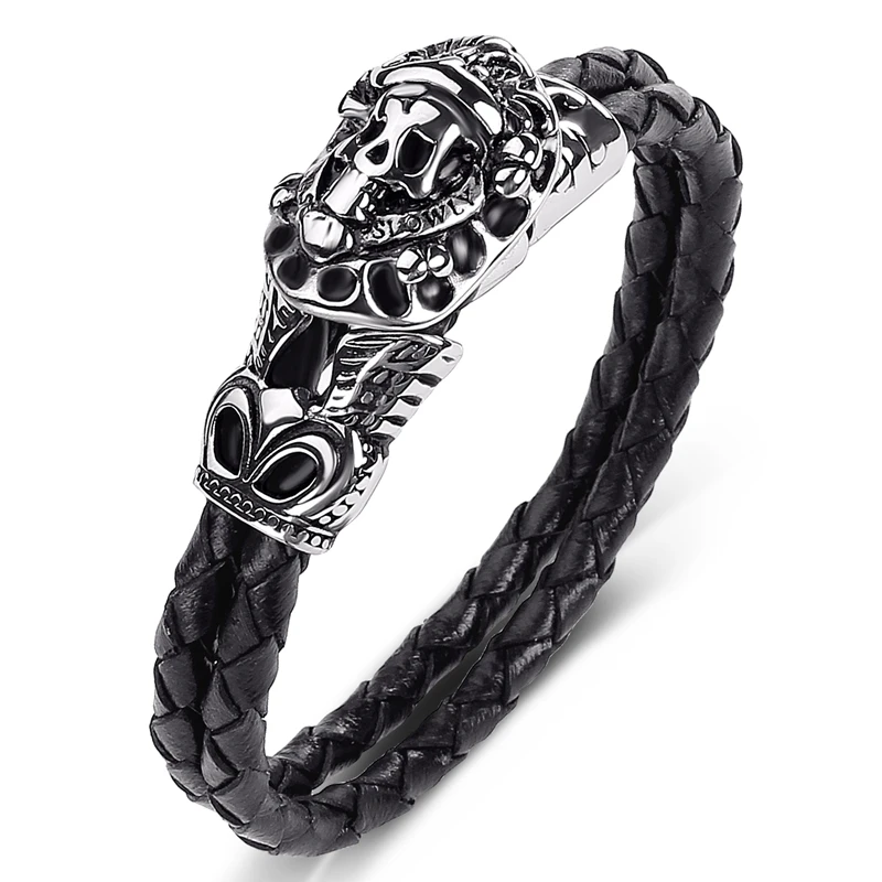 Модные мужские ювелирные изделия кожаные браслеты из нержавеющей стали с черепом панк Очаровательные Популярные мужские браслеты Подарки Оптовая Продажа P511