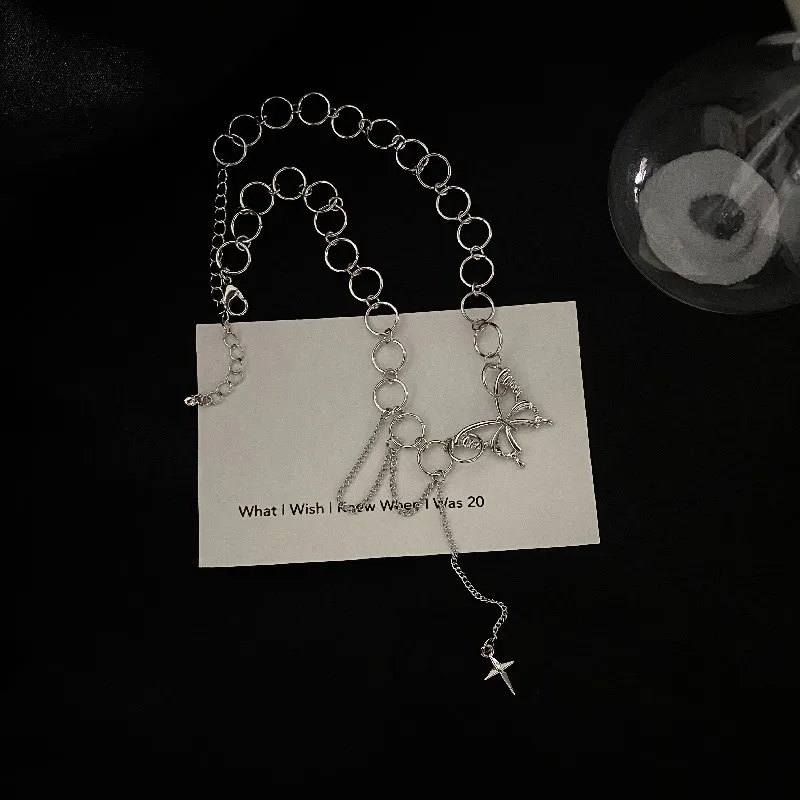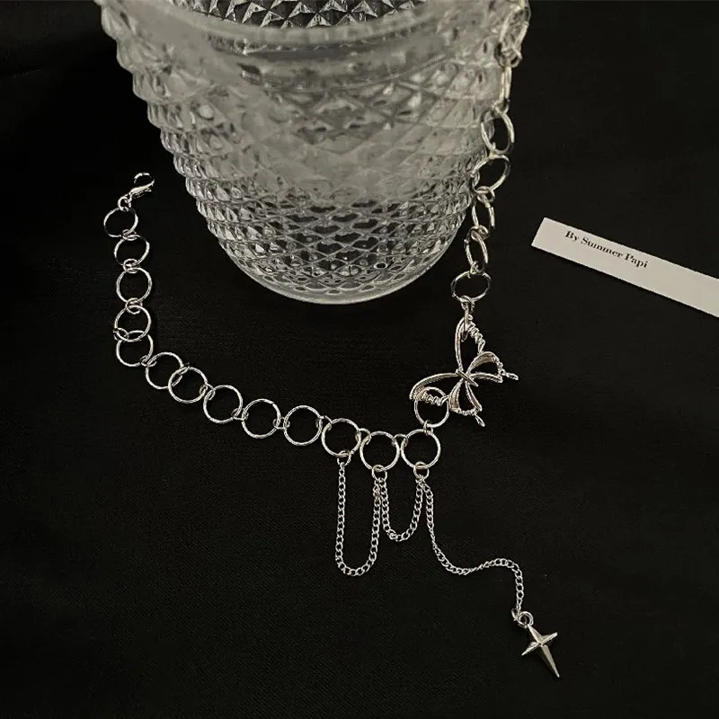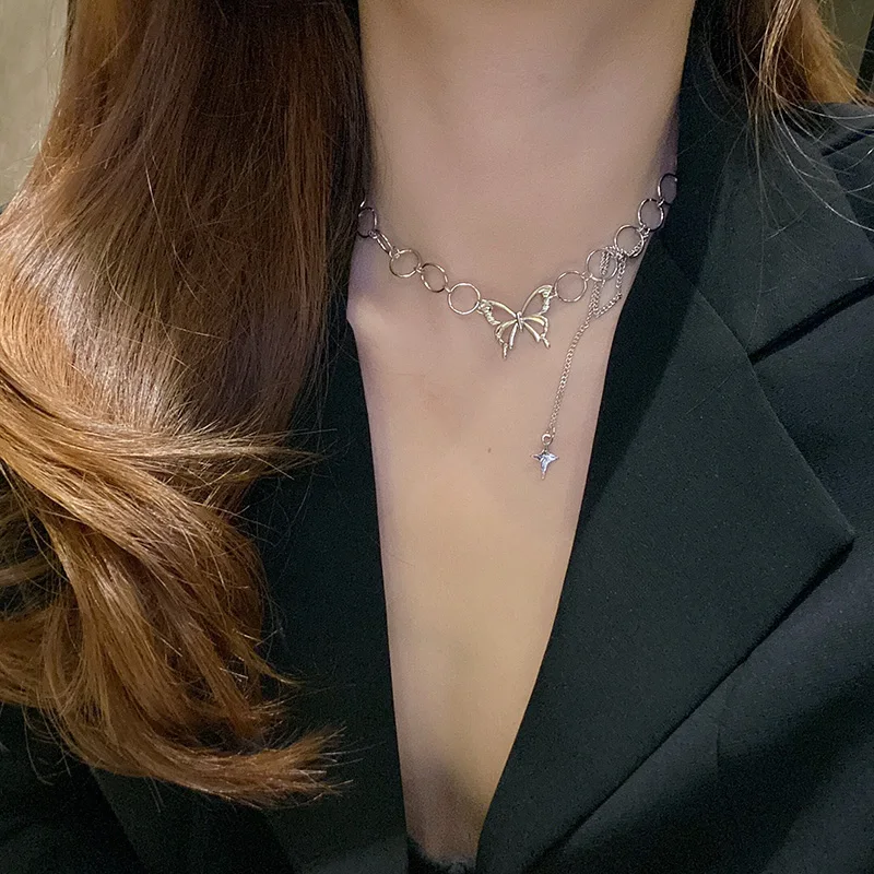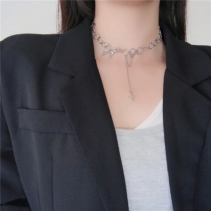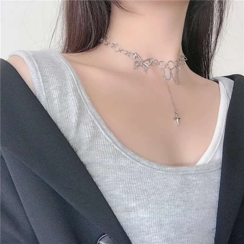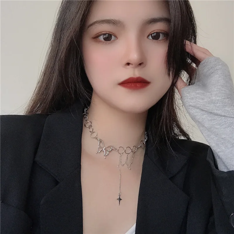 Harajuku в стиле панк Стиль бабочки для женщин ожерелье в готическом стиле, в стиле хип-хоп Ссылка ожерелье из циркона квадратной Колье цепи ювелирные изделия корейские металличесые наклейки и аксессуары в стиле поп