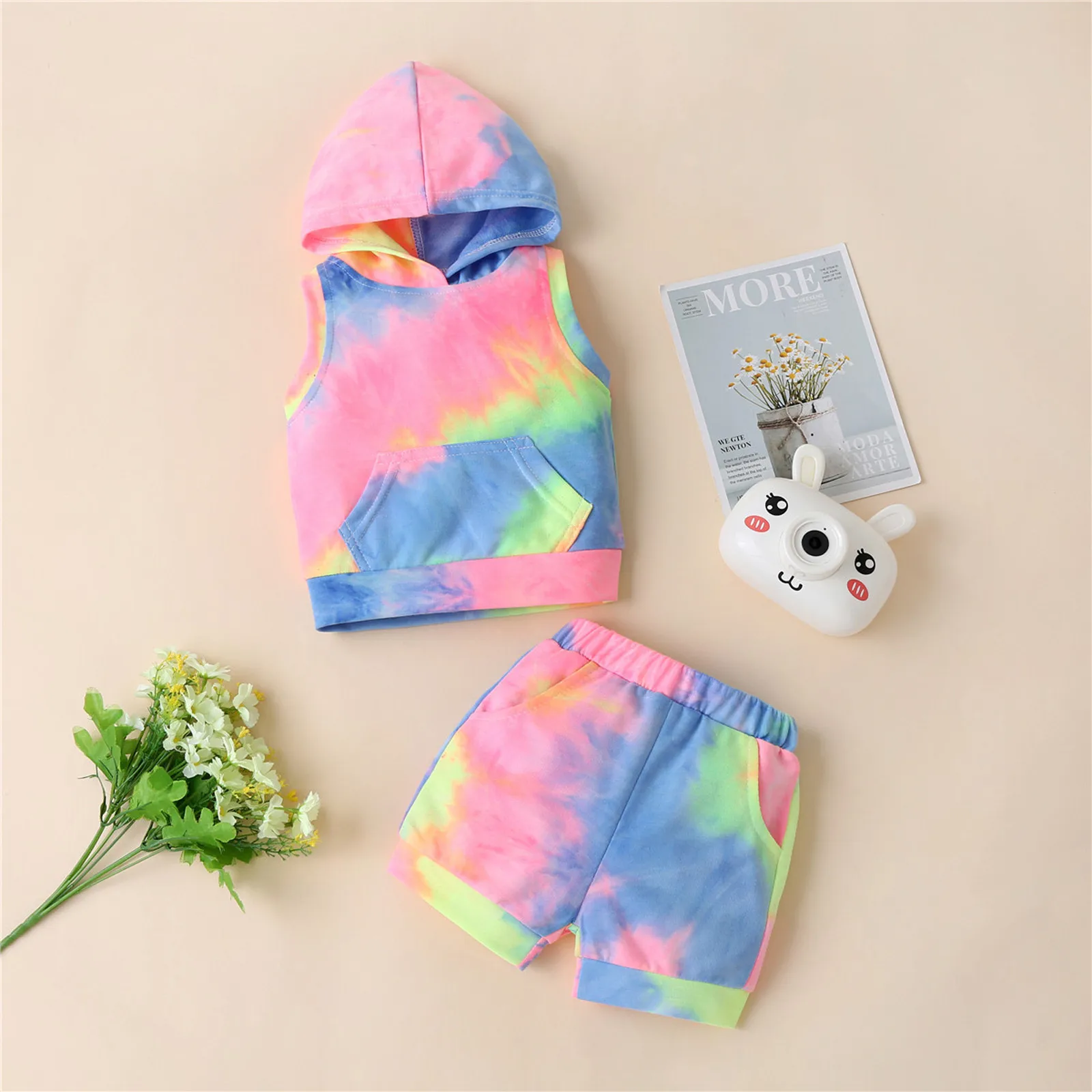 Комплект одежды для маленьких девочек, свитер и жилет градиентного цвета, короткая летняя повседневная одежда, спортивный костюм из 2 предметов, наряды