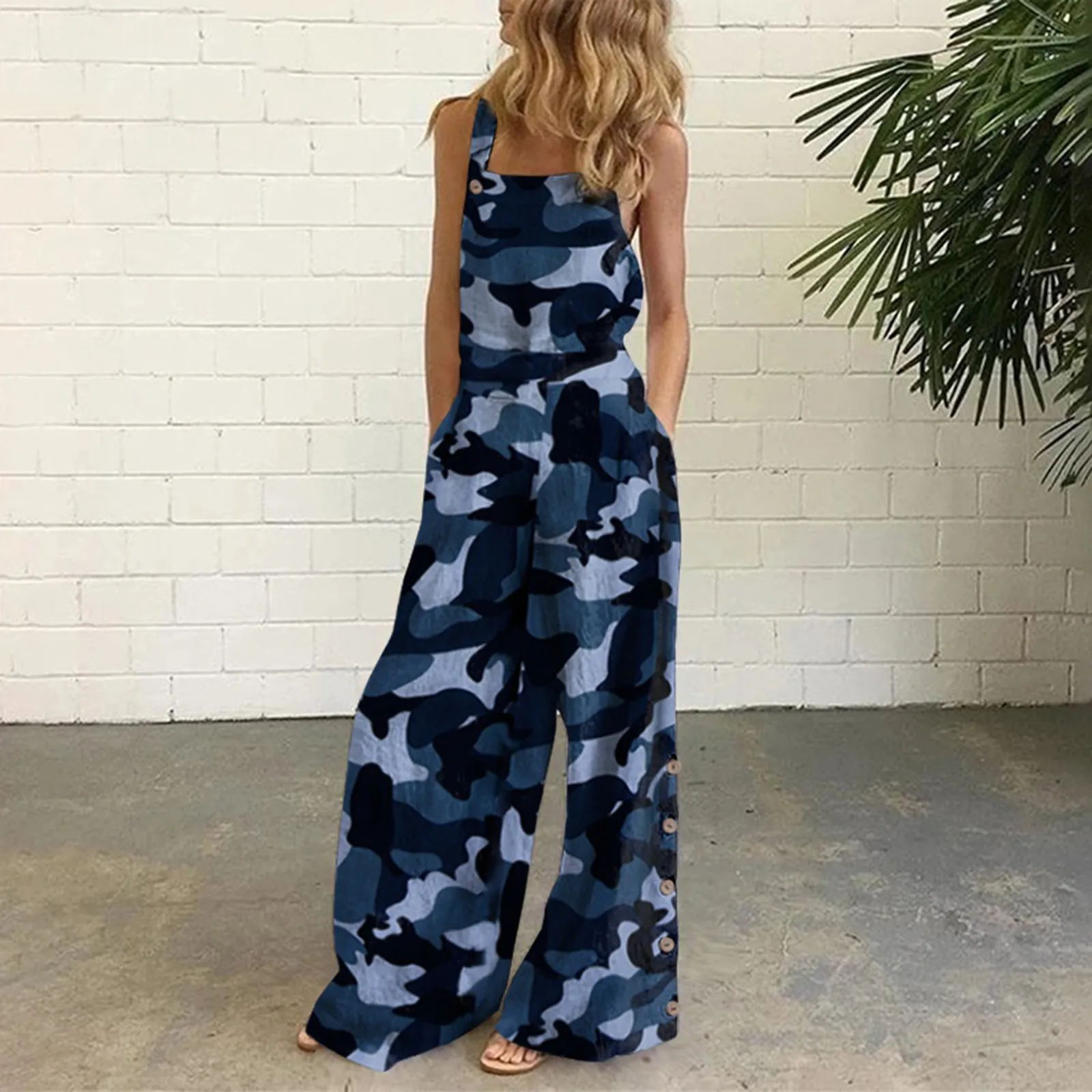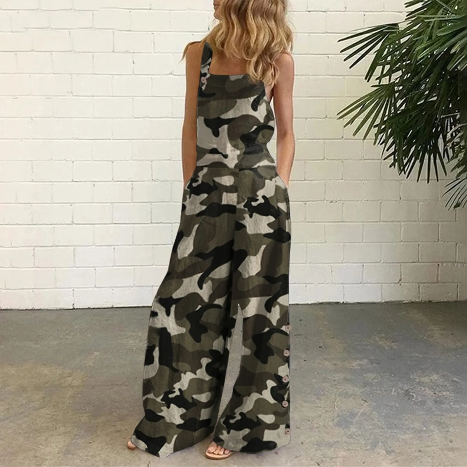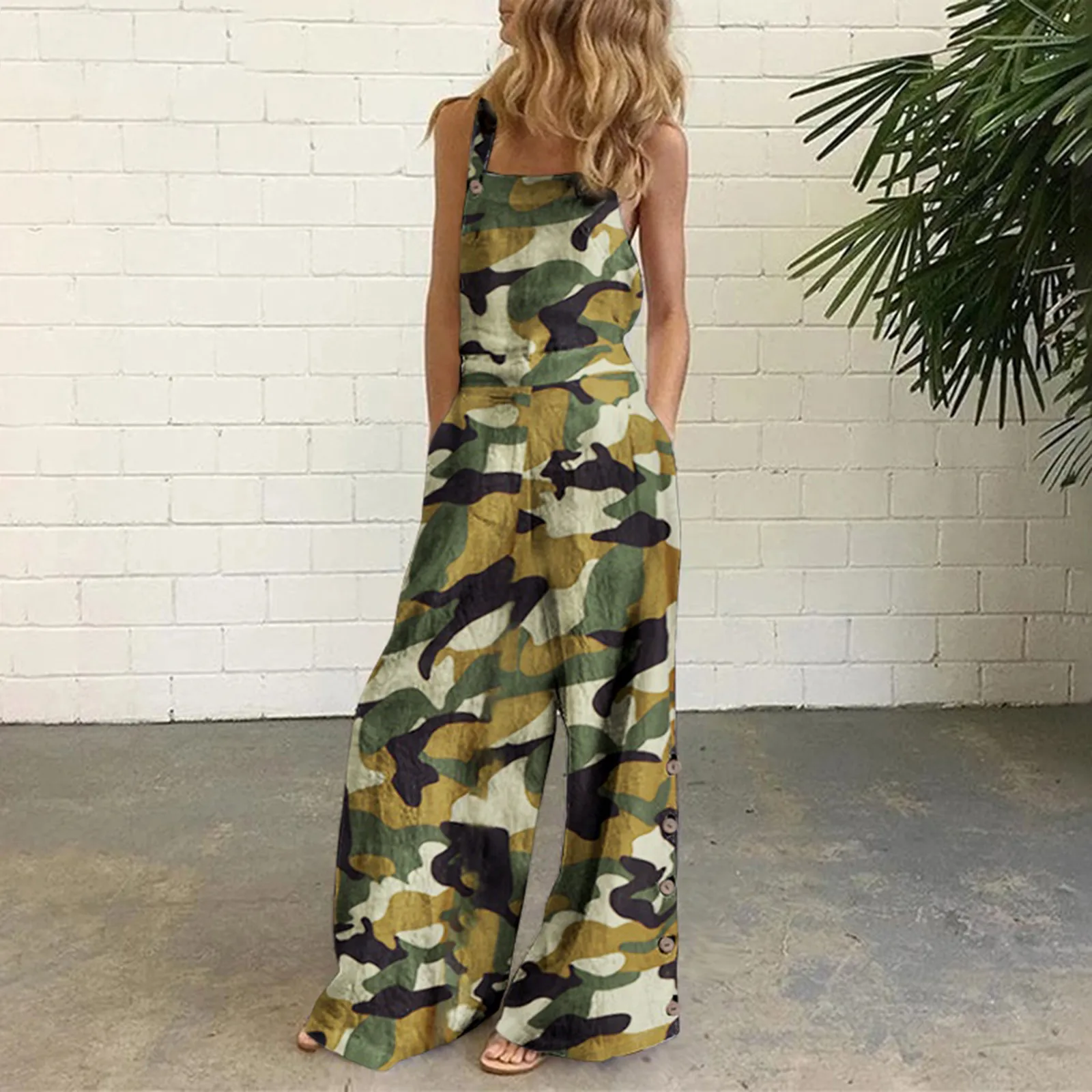 Женский комбинезон без рукавов, повседневный комбинезон с цветочным принтом, Летний комбинезон с широкими штанинами