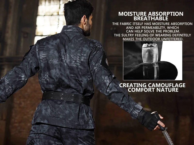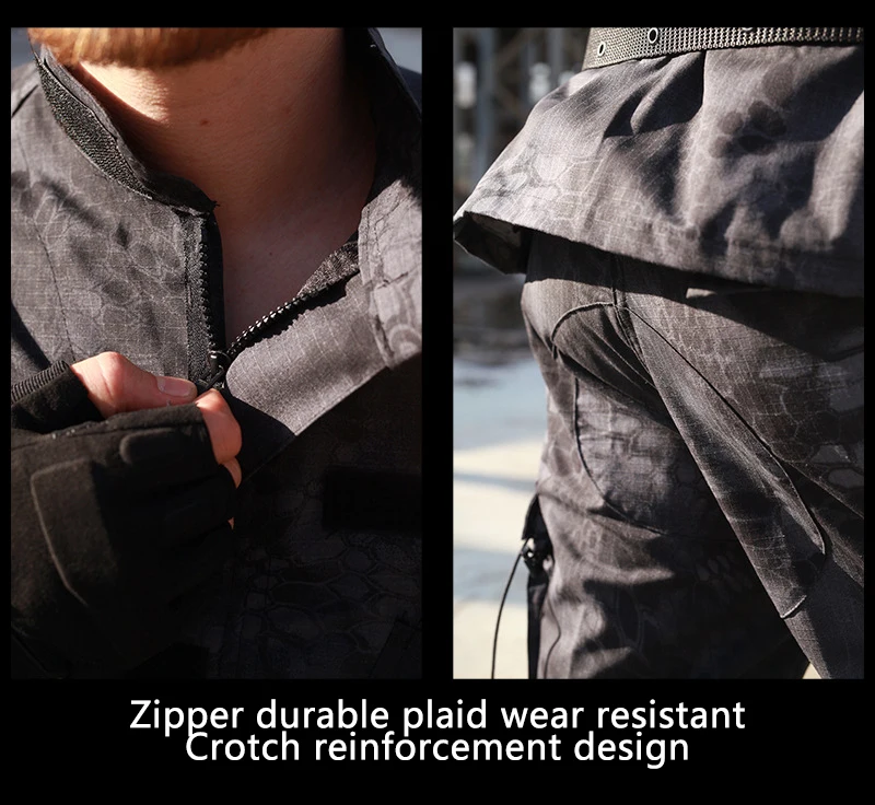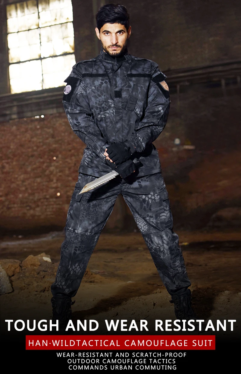 Военная форма Камуфляжный Тактический костюм для мужчин армейский спецназ боевая рубашка пальто брюки комплект камуфляж Militar одежда для солдатДля куртки:1. Стоячий воротник с двусторонней липучкой для защиты шеи, регулируйте герметичность для защиты от ветра.2. Прочный наивысшего качества на молнии, гладкая и wear-resistant.with защиты на липучке, красивая и удобная.3. Дышащий/износостойкий материал, подходит для пеших прогулок, альпинизма, кемпинга, охоты, CS, тренировок весной и летом4. Липучка на руке, наклейте любой знак, который вам нужен.5. Всего 18 велкрос, не только практичный, но и модный для спорта6. Манжеты на липучке, манжета регулируется, ветрозащитная затягивается.7. Абсолютно 12 разных цветов для вас.8. Быстро сохнет и легко чистится ткань, не выцветает9. Отличное качество изготовления, закрытые машинные швы, без стежков на воротнике10. Дизайн с несколькими карманами, в общей сложности 6 герметичных карманов на липучке: 2 спереди, 4 на рукавах, большая вместимость, более безопасный11. Двойной Экстра утолщенный налокотник, более толстый и пригодный для носки.Для брюк:1: дизайн с несколькими карманами, в общей сложности 8 карманов: в комплекте 4 кармана на липучке (2 очень больших кармана),2 кармана на пуговицах на бедрах, большая вместимость, более безопасный2: полностью 3 способа поясного ремня: шнурок, кнопка и ремень, вы можете регулировать размер, предотвращая попадание комаров.3: регулируемый носок брюк (в комплект входит шнурок)4: быстросохнущая и легко моющаяся ткань, не выцветает5: двухслойная ткань для колена, более устойчивая к истиранию