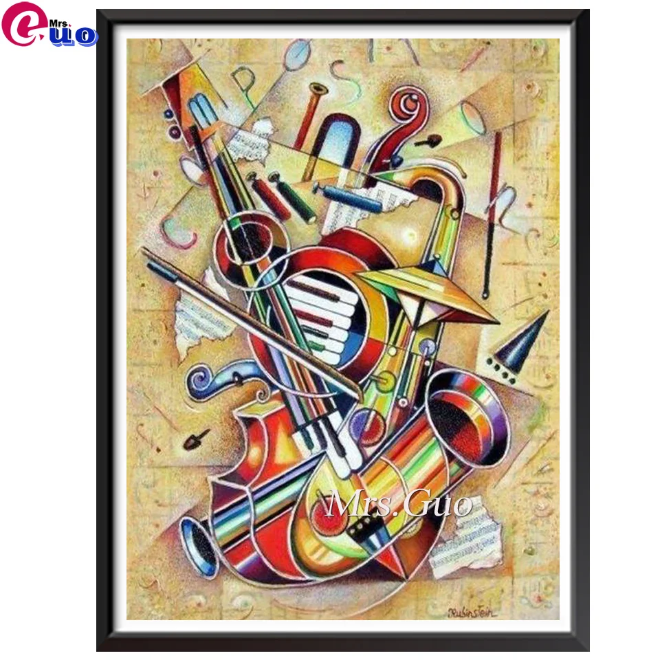 DIY 5D со стразами с вышитыми музыкальными инструментами мозаичные камни в форме ромба Алмазная вышивка крестиком на рисунке, абстрактная живопись с музыкальным символом