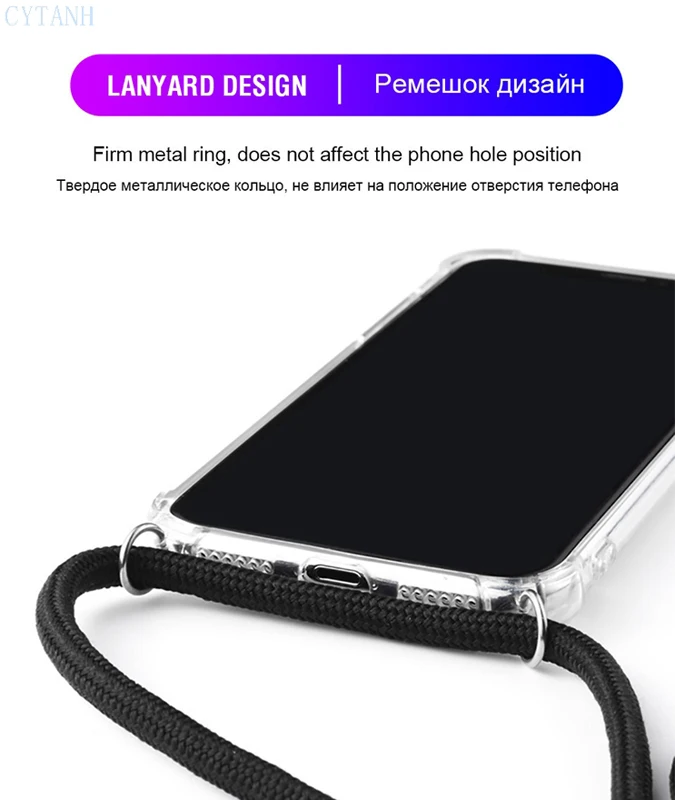 Прозрачный мягкий чехол для переноски Ожерелье Веревка для телефона...