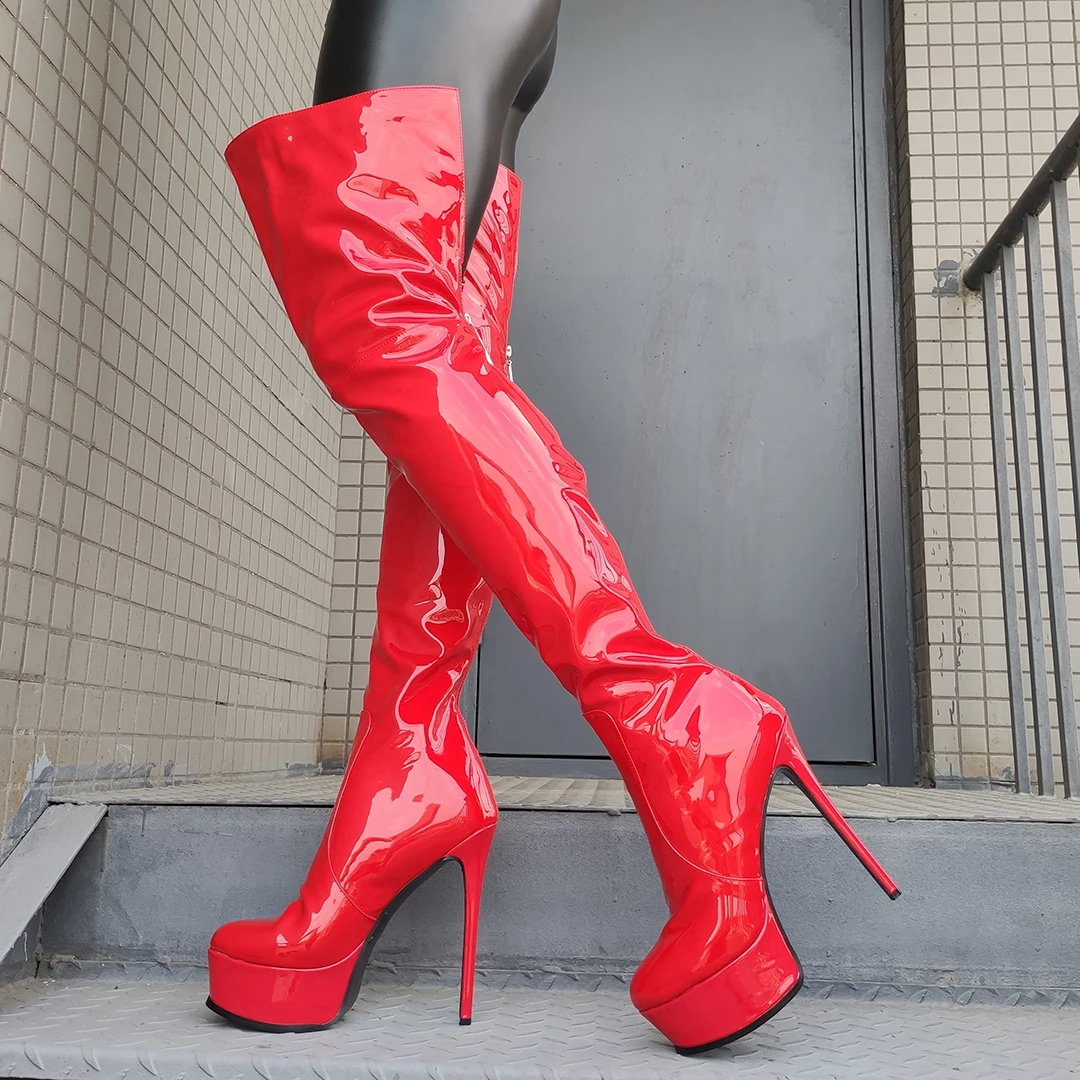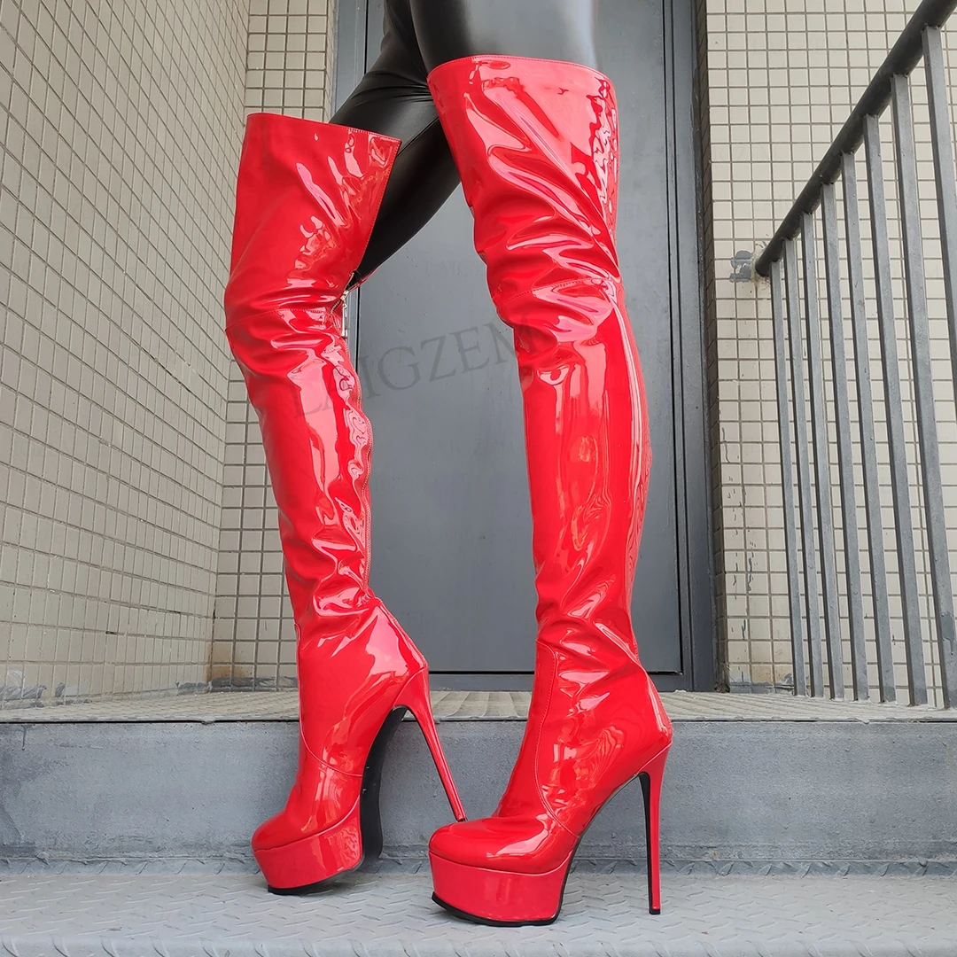 Женские высокие сапоги до бедра SEIIHEM, блестящие Сапоги выше колена на платформе и высоком каблуке, на молнии сзади, женские сапоги, большой размер 41 45 52
