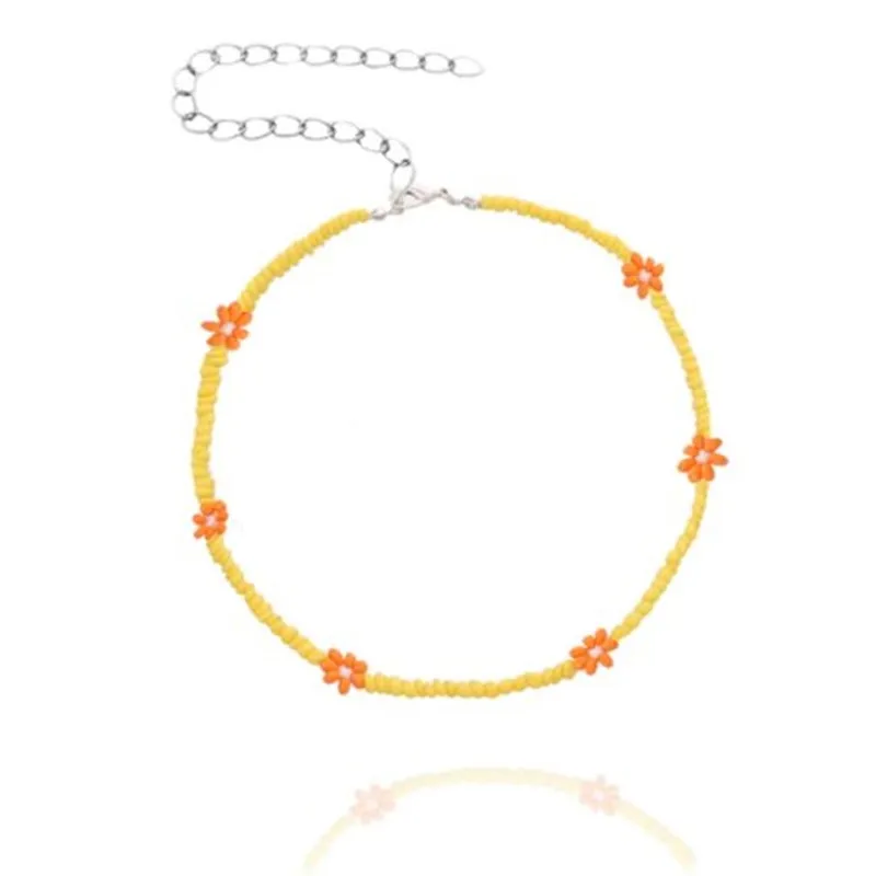 Новинка, модное цветное колье с бусинами для женщин и девочек, летнее ожерелье с цветами, короткое пляжное ювелирное изделие, оптовая продажа, Прямая поставка