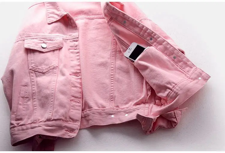Женская джинсовая куртка, короткая весенне-осенняя куртка, розовые ...