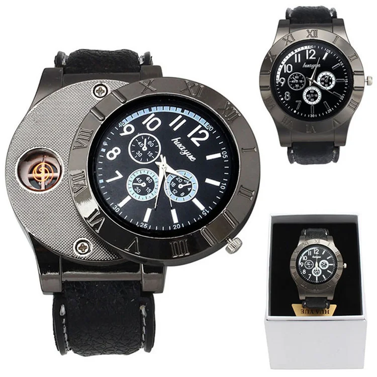 Лидер продаж, зажигалка для часов, USB Зажигалка с электрической дугой, гаджеты для мужчин, подарок, мужские кварцевые наручные часы
