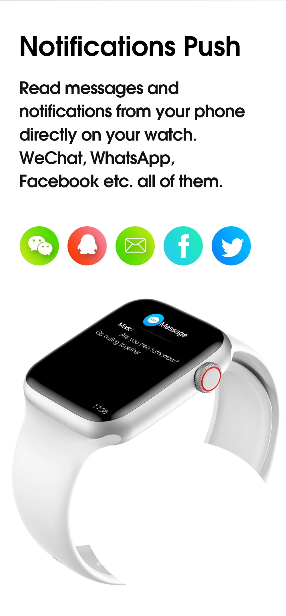 1. Уведомление: синхронное уведомление о входящих сообщениях из центра уведомлений в вашем телефоне (SMS,Fackbook,INS,Twitter и т. д.), напоминание о входящих звонках.