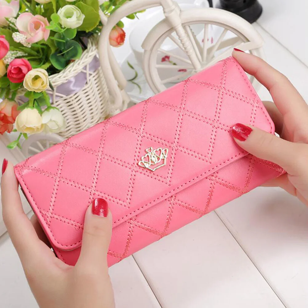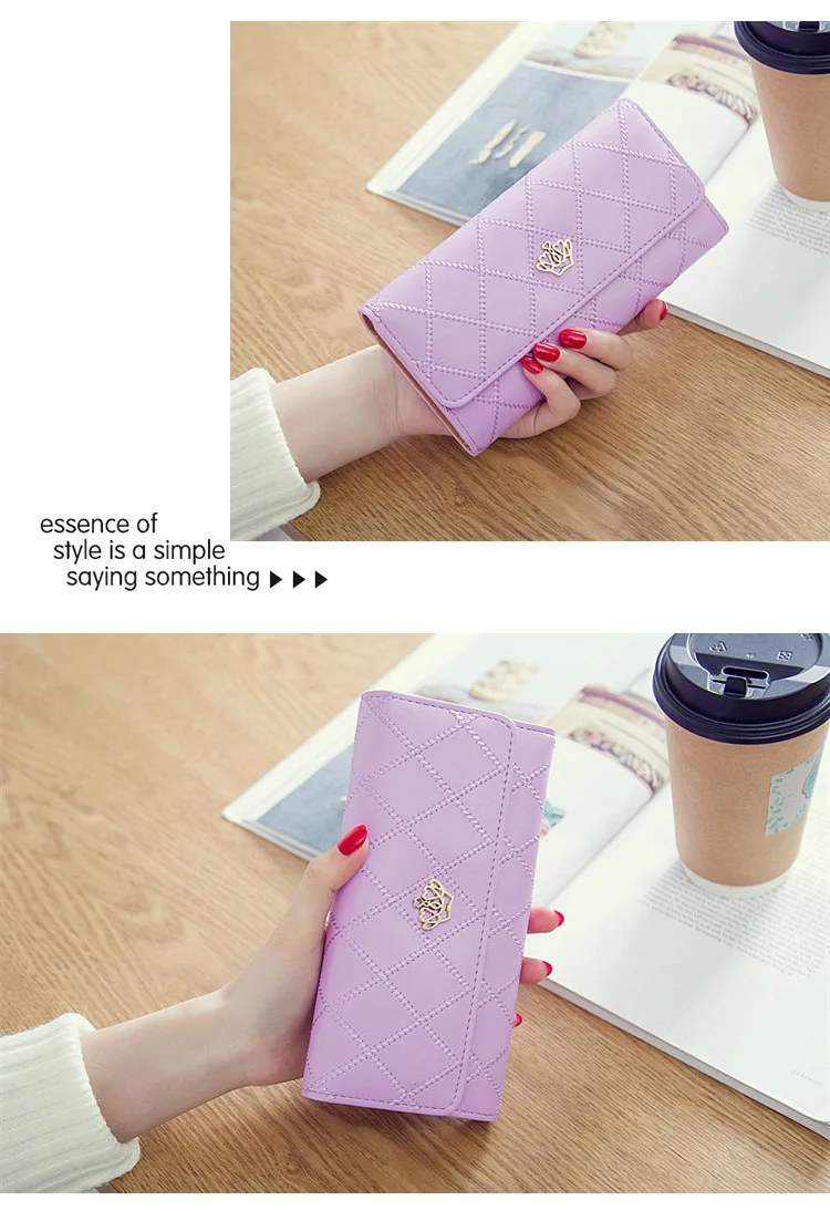 Женские кошельки плед из искусственной кожи Корона длинныекороткий кошелек на застежке для телефона Сумка Сумочка для денег и монет карман держатель для карт Женский кошелек сумочка