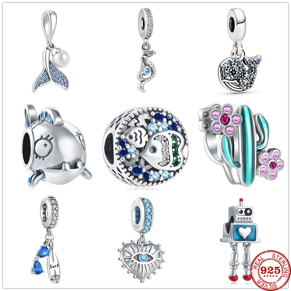 Женский браслет русалка, Кит, Акула, кактус из серебра 925 пробы