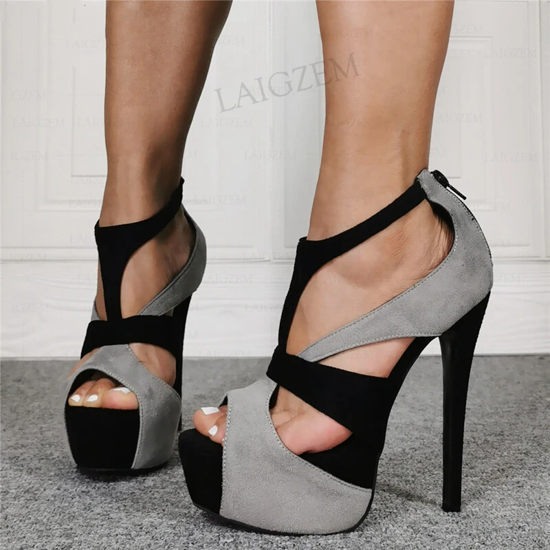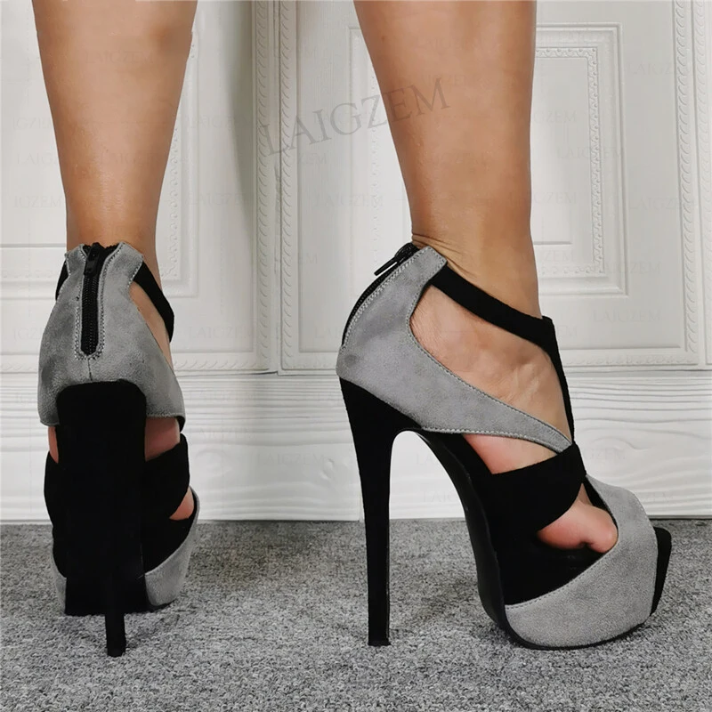 SEIIHEM; Женские босоножки на платформе; Туфли на шпильках с открытым носком; Молния сзади пэчворк туфли из искусственной замши; Женская обувь; Для женщин; Большие размеры 41-46-52