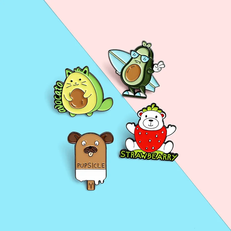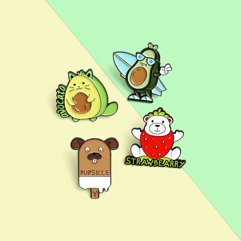 Щенок Медведь Брошь фрукты животное брошь Мультфильм клубника брошь в виде щенка брошь авокадо мороженое авокадо кошка Медведь Берри брошь