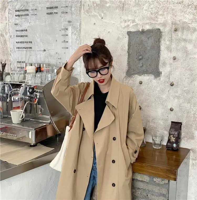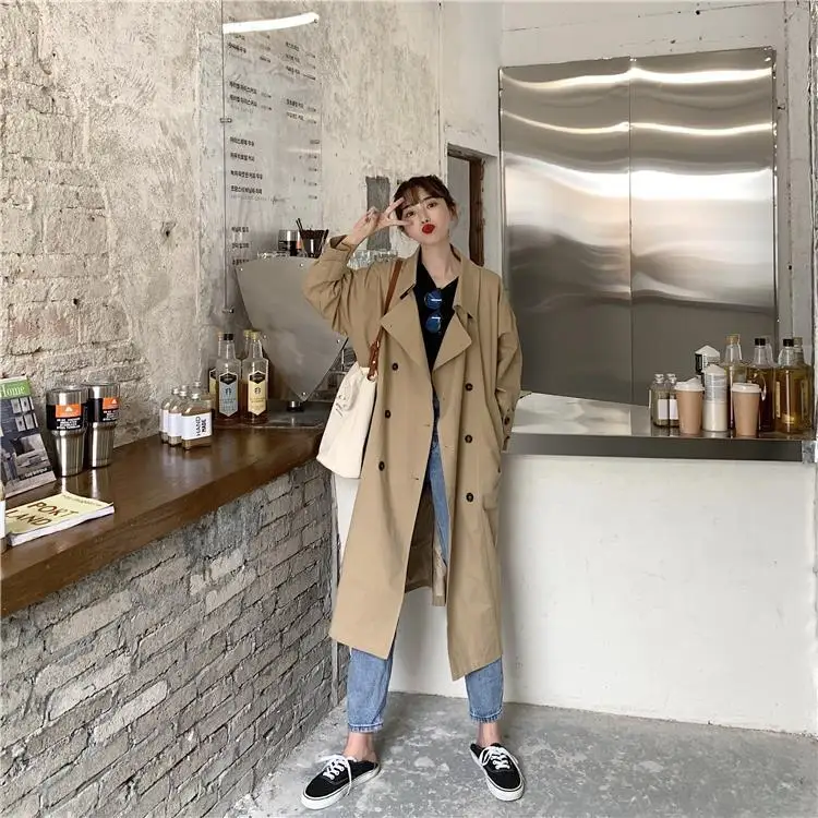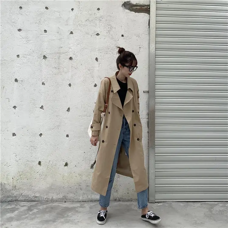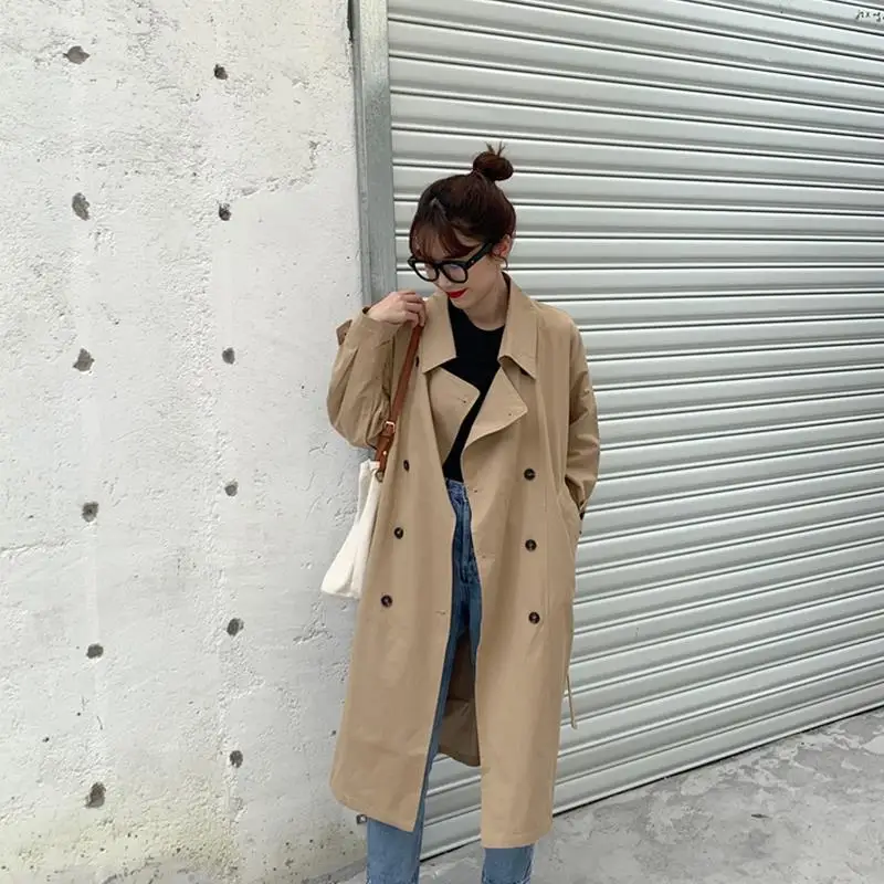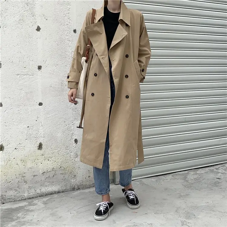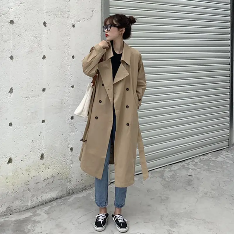 Женский Тренч с регулируемой талией, однотонный двубортный Тренч в ...