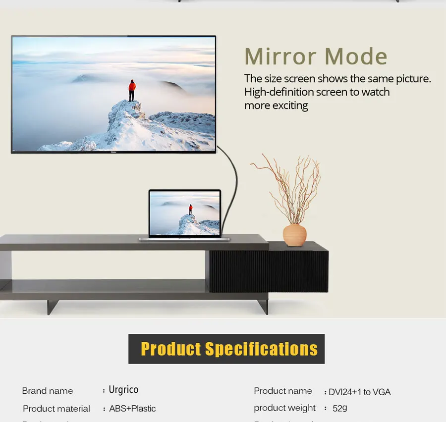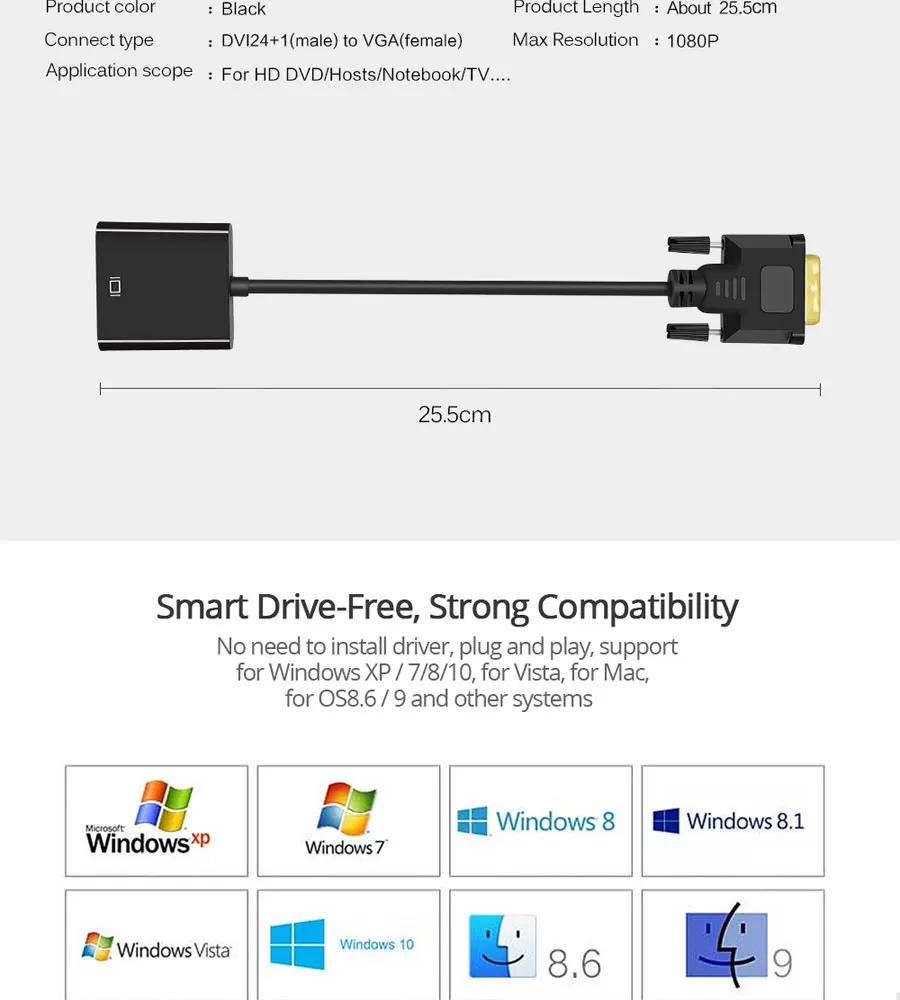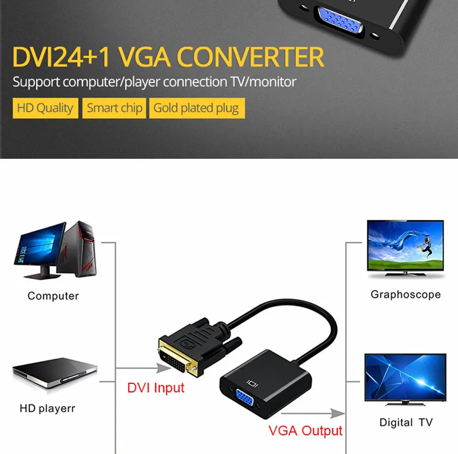 Адаптер Alfavoce 1080P DVI-VGA 24 + 1 25 Pin DVI папа-15 Pin VGA