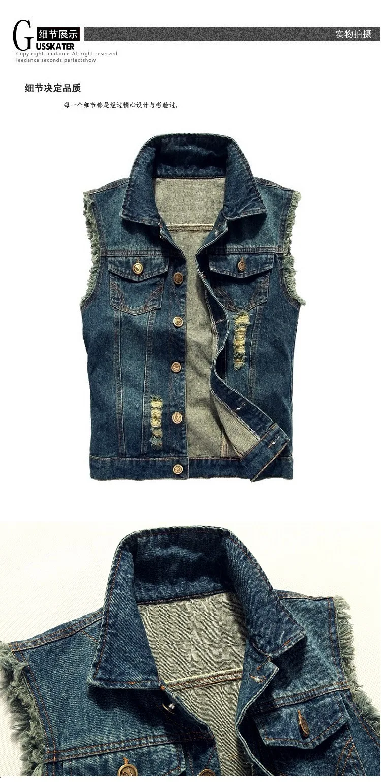 2022 мужской осенний рваный джинсовый жилет, приталенный джинсовый ...