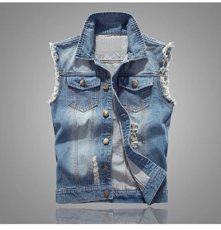 Жилет мужской джинсовый рваный, жилет из денима, Джинсовая безрукав...