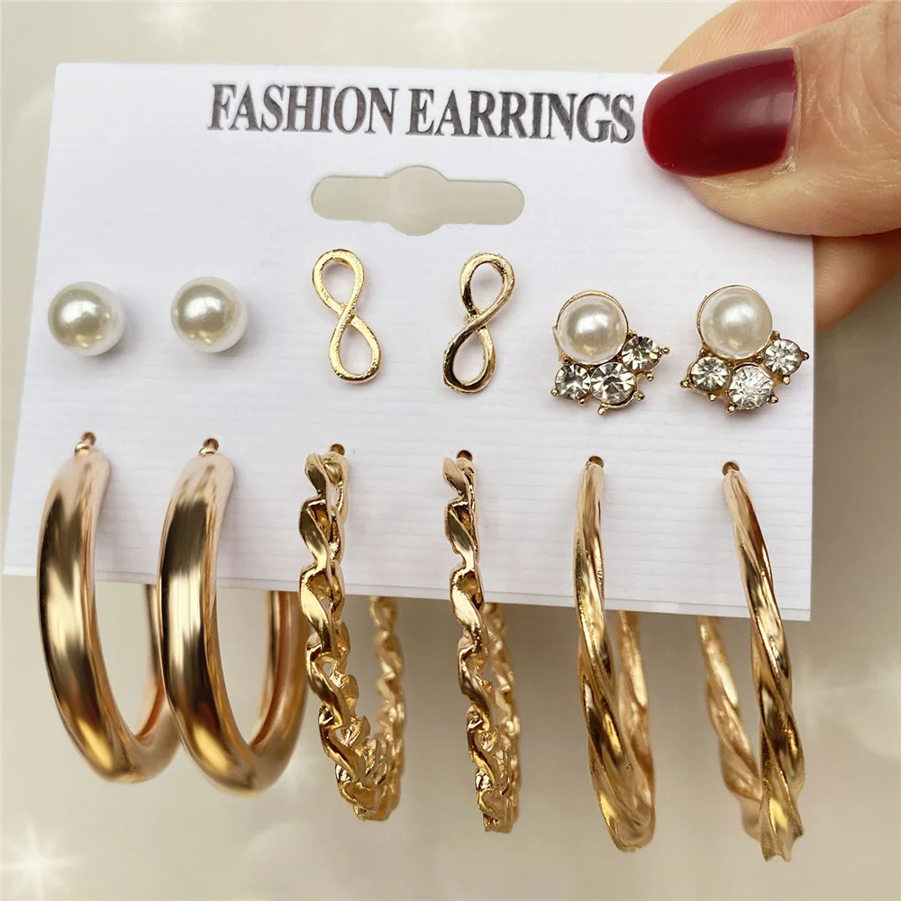 Женские серьги-бабочки IPARAM, винтажные металлические витые серьги из сплава с жемчугом, комплект серег-колец, 2021