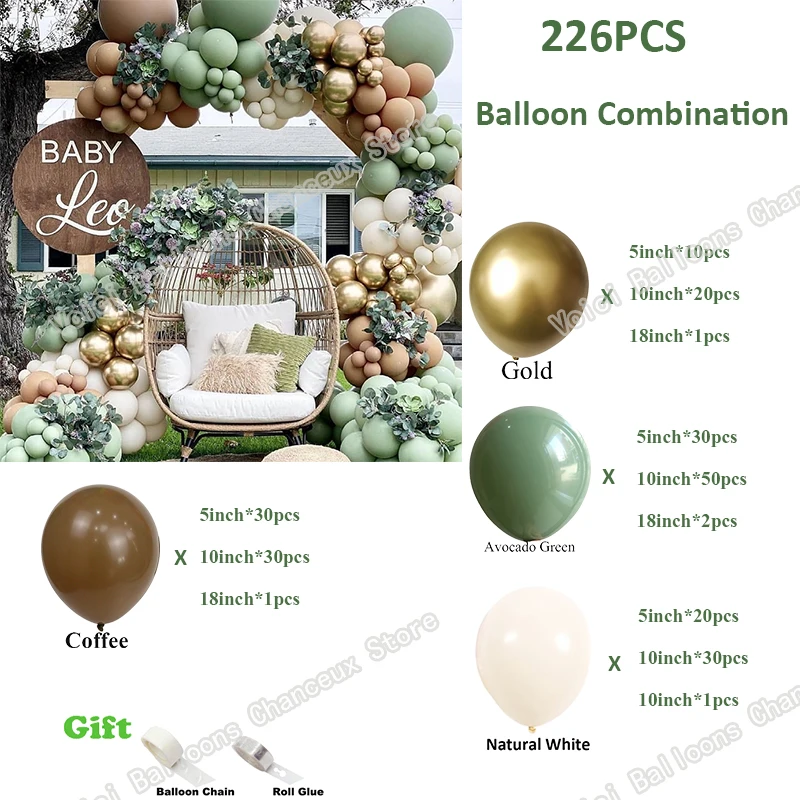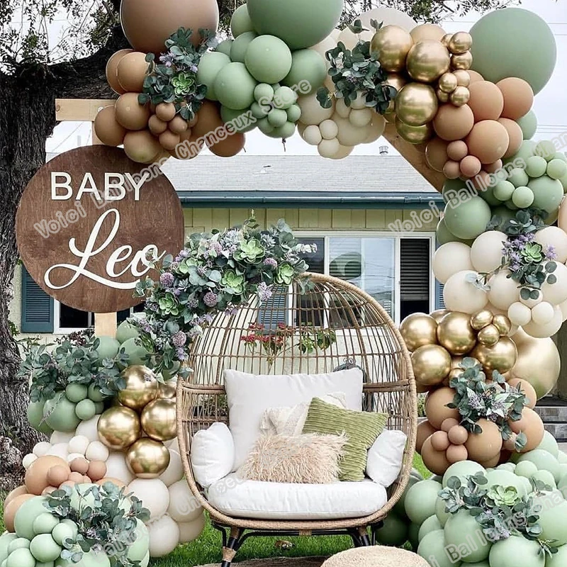 Гирлянда в стиле ретро с зелеными воздушными шарами авокадо, свадебное украшение, украшение для дня рождения, декор для детского праздника, пол, Цвет: Золотой, кофе