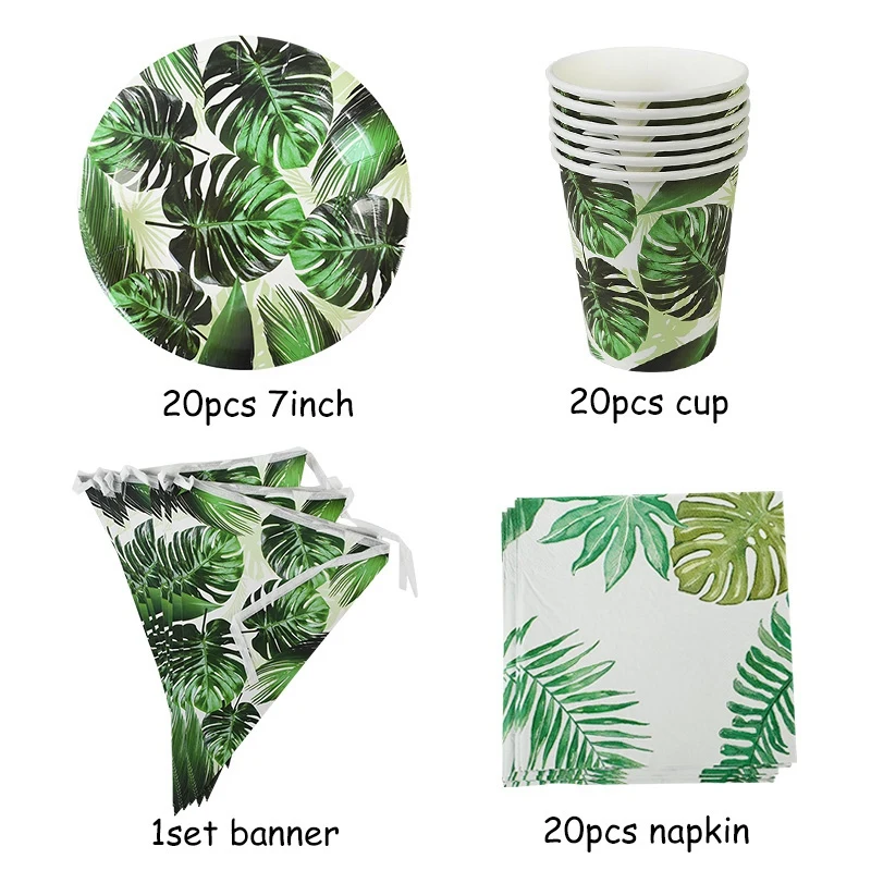 61 шт. Гавайскую вечерние украшения пальмовых листьев посуда по производству бумажных тарелок чашки тропический летний день рождения вечерние Свадебный декор