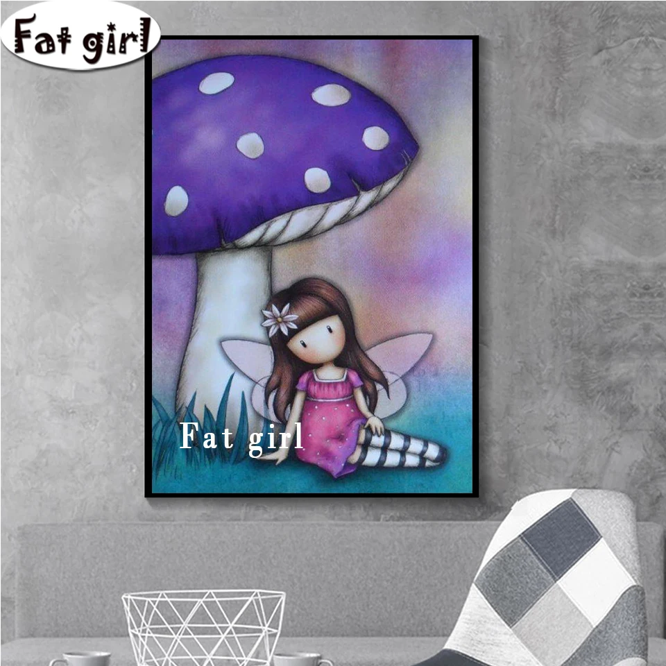5D алмазная картина фиолетовый гриб зонтик домашний декор Продажа мультфильм девушка полный квадратный Круглый Алмаз вышивка крестиком набор