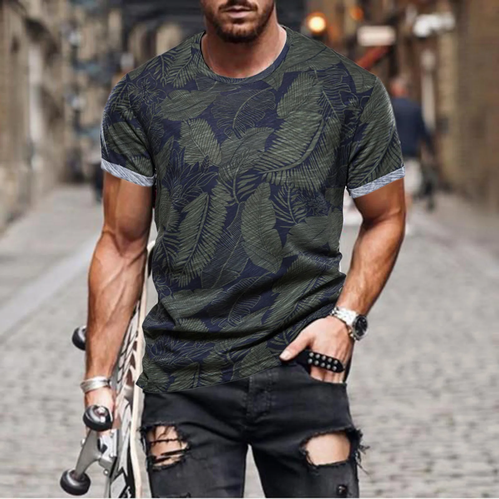 Новинка 2021, летние футболки с принтом листьев, Мужская футболка с круглым вырезом из 100% хлопка в стиле Харадзюку, Мужская футболка с коротким рукавом, летние мужские топы, футболки
