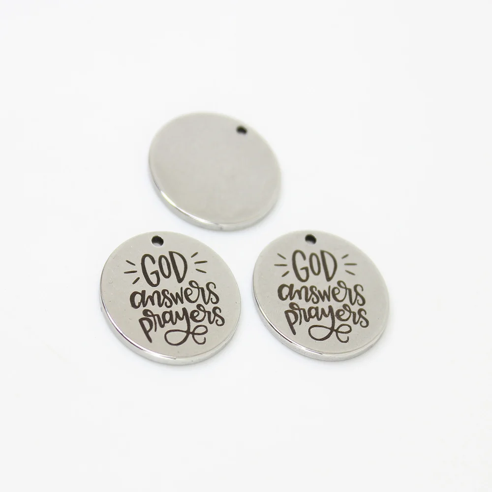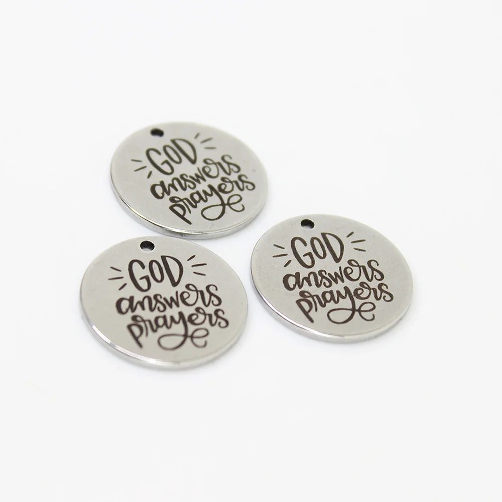 Подвеска Бог отвечает на молитвы из нержавеющей стали с лазерной гравировкой, 8 шт.лот, 22 мм, подвеска сделай сам для изготовления ювелирных изделий