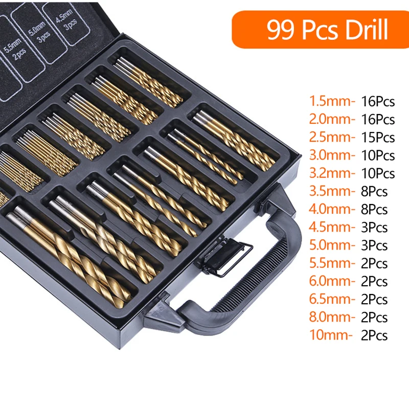 OIMG 99 шт. набор сверл с титановым покрытием поверхность с покрытием 118 градусов для сверления дерева тонкий металл DIY для домашнего использования с BОсобенности: