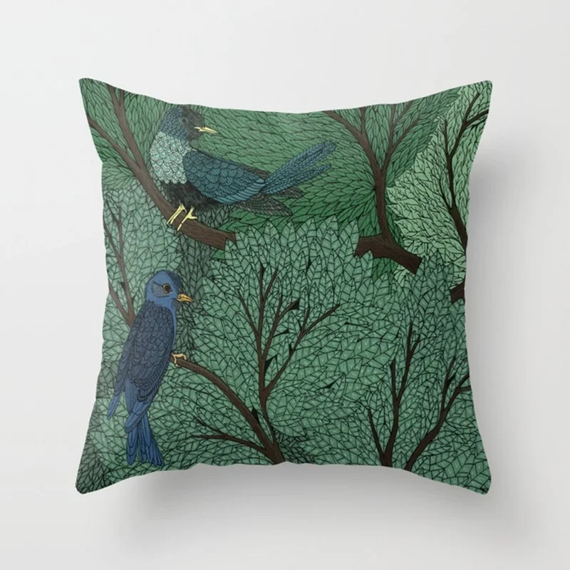 Красочный чехол для детской подушки с рисунком зеленых листьев