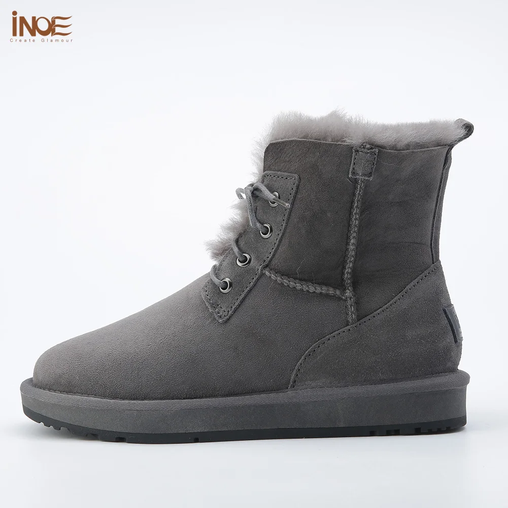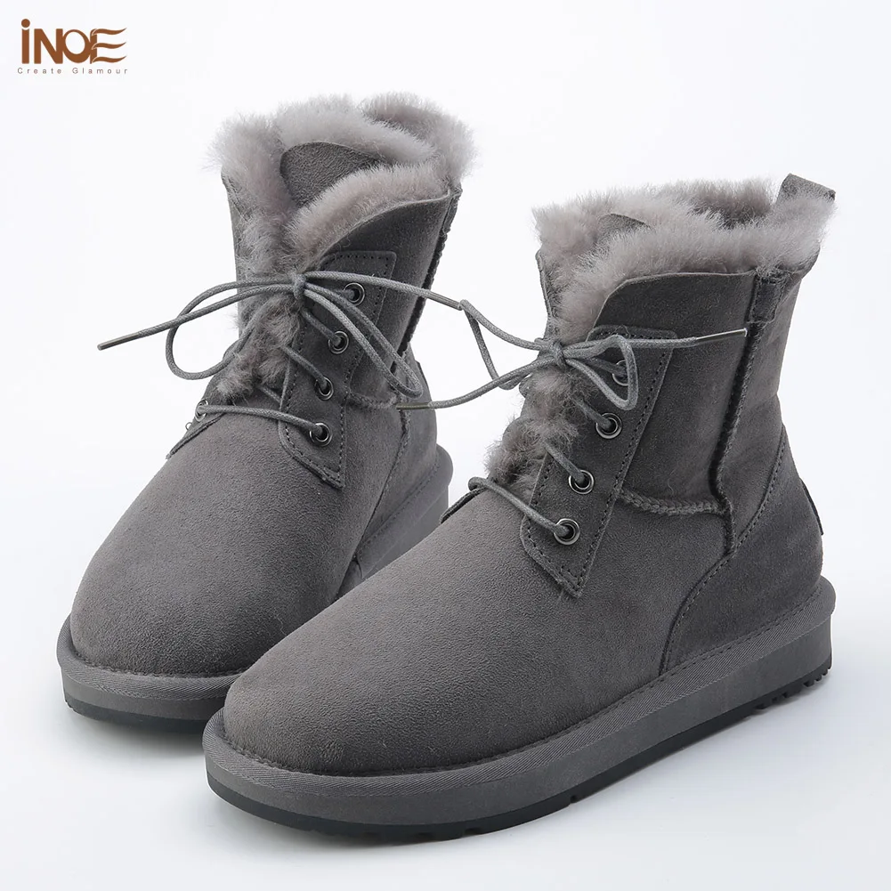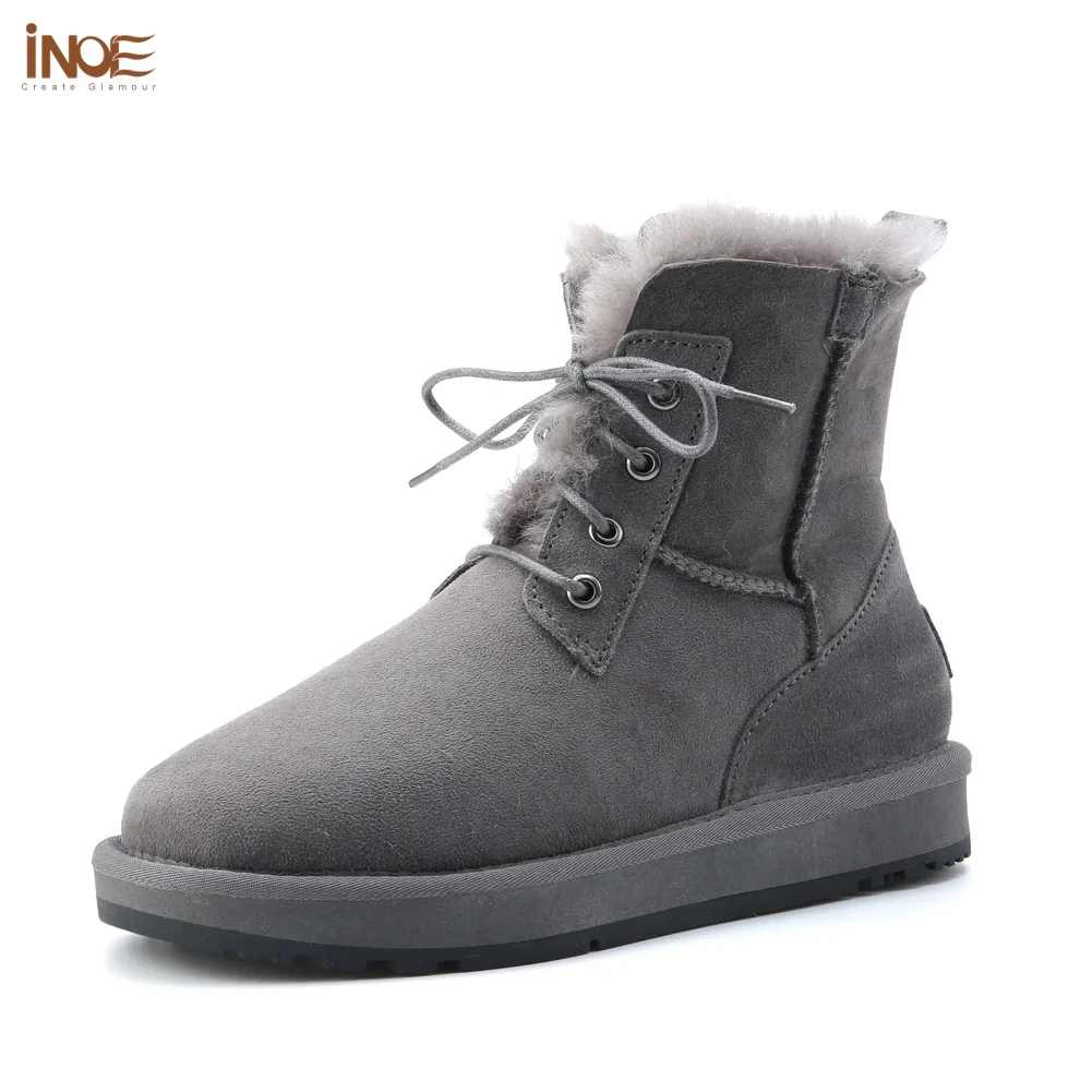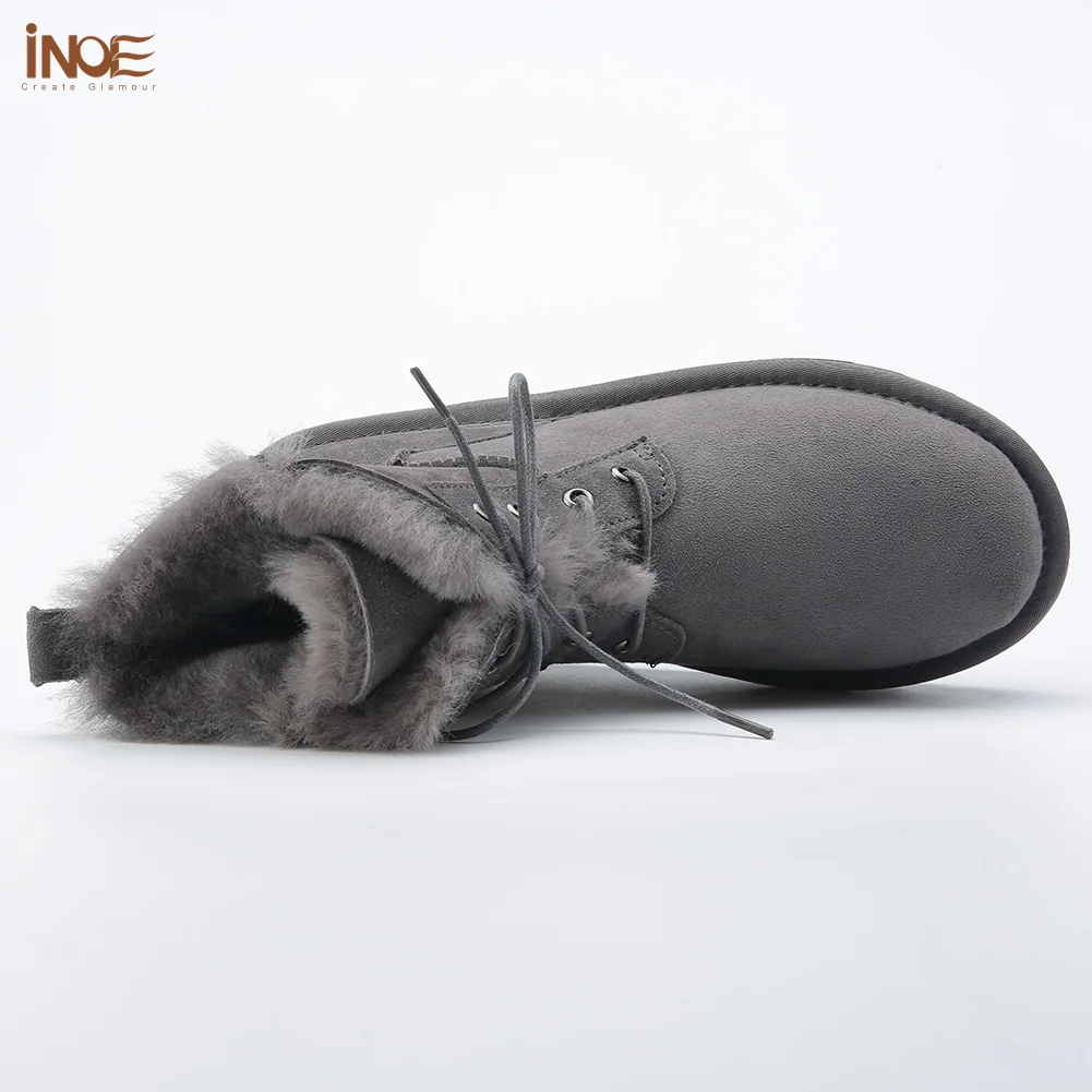 INOE женские короткие зимние зимние сапоги из натуральной овчины замшевые из натуральной шерсти на меховой подкладке непромокаемые на шнуровке серые туфли на плоской подошве