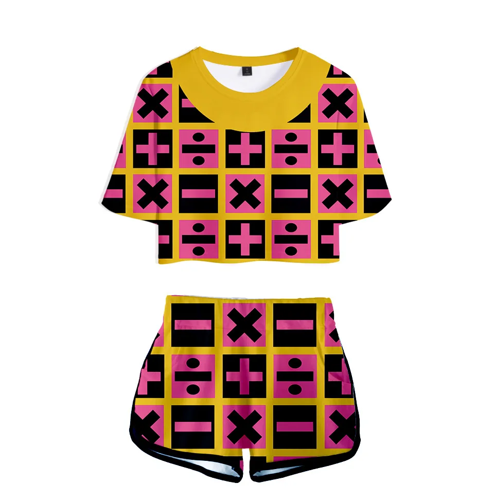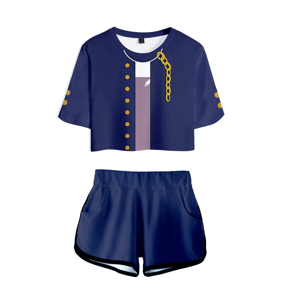 Женский комплект из двух предметов и шортов, Сексуальная Спортивная одежда для девушек, женский укороченный топ с 3D рисунком Джоджо невероятные приключения