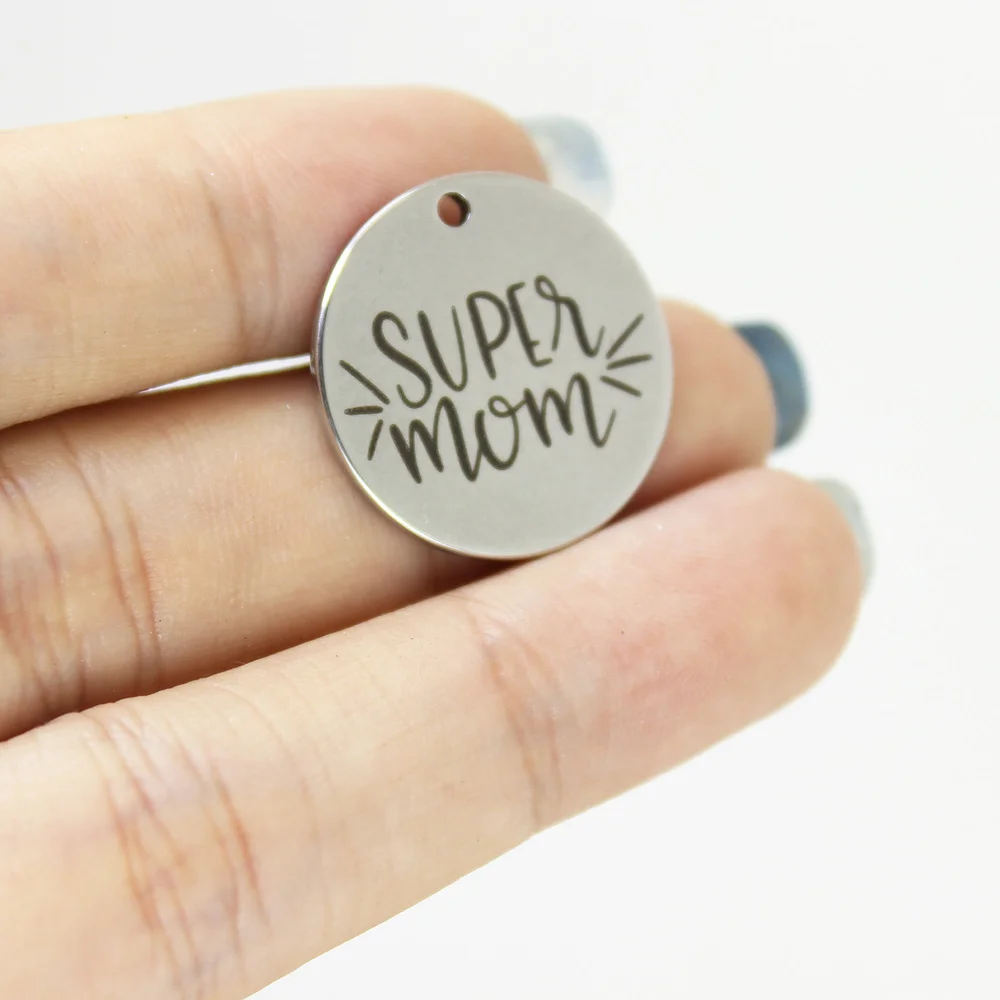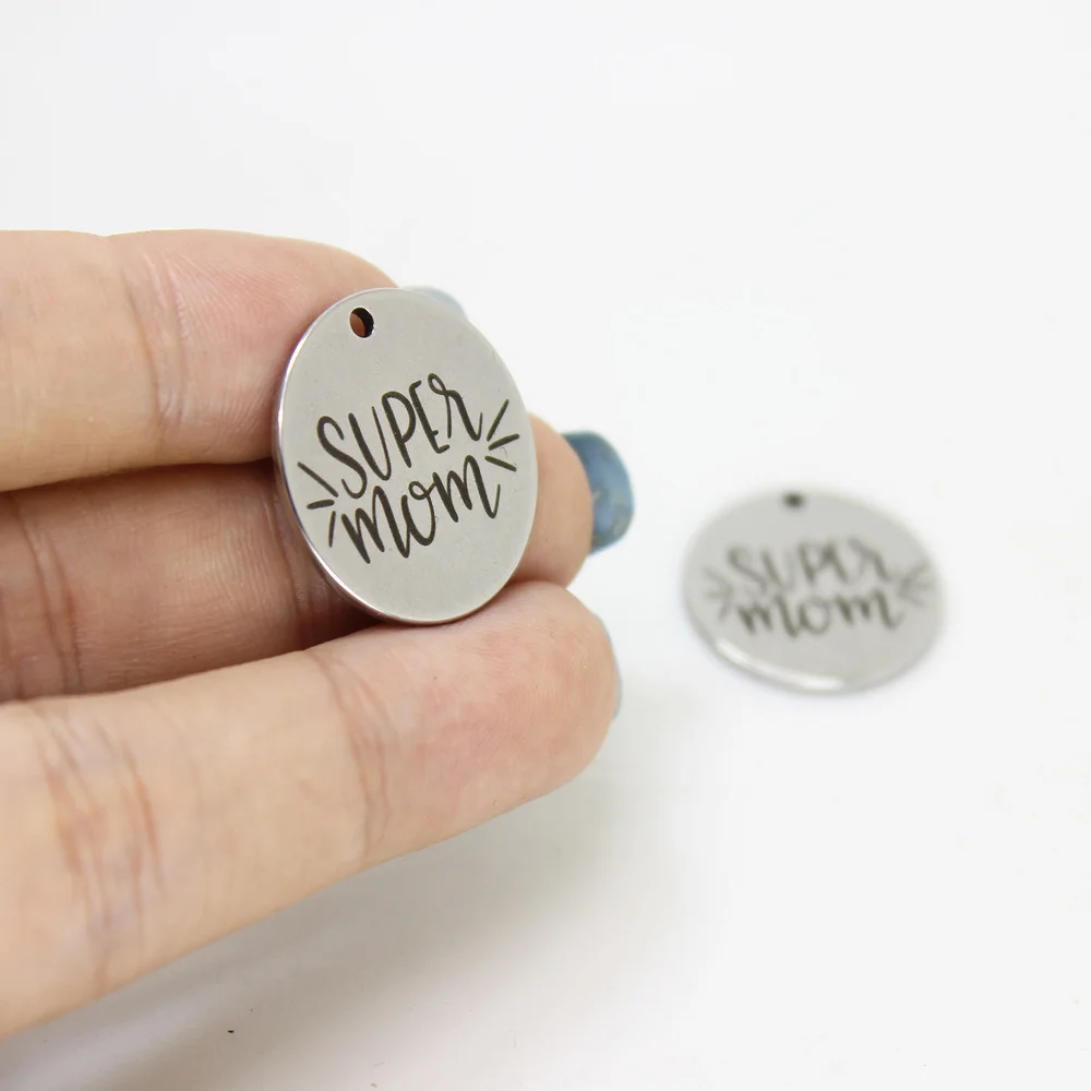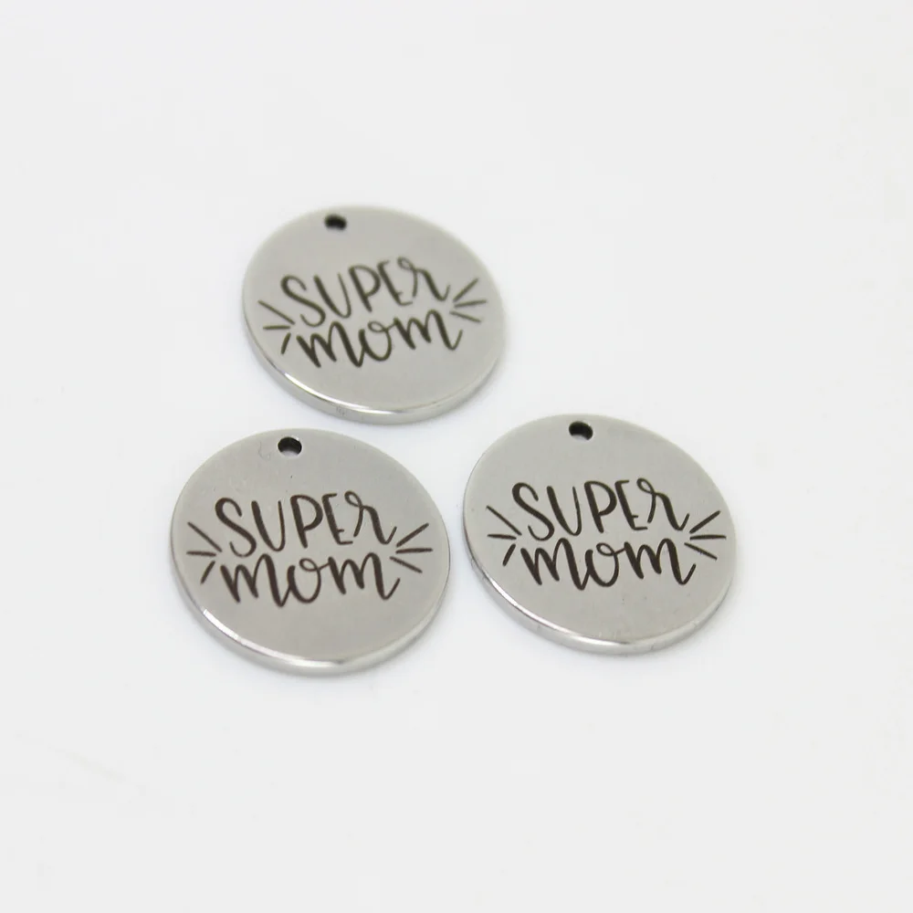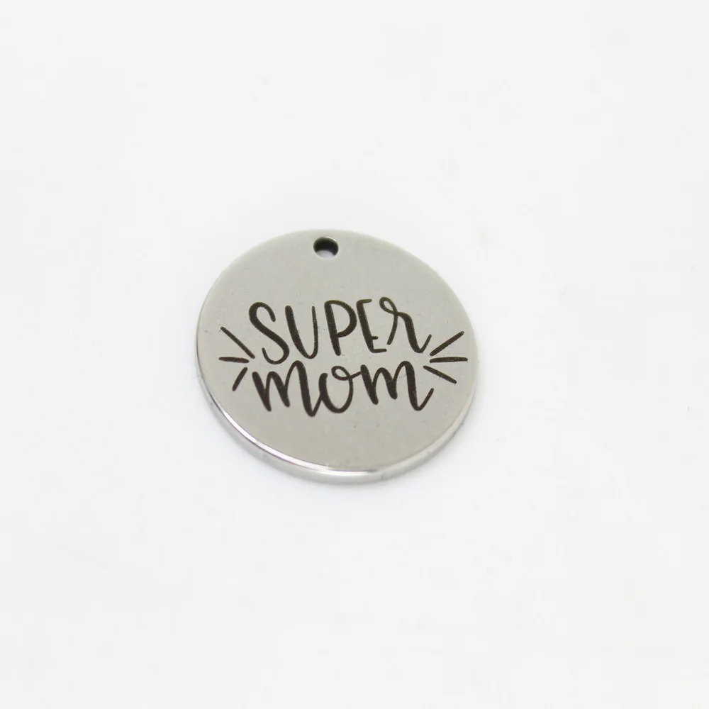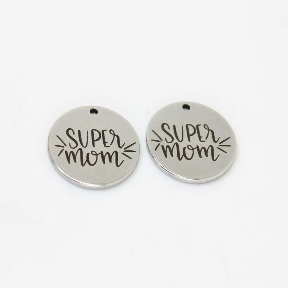 Подвеска Super Mom из нержавеющей стали с лазерной гравировкой, 8 шт.лот, 22 мм
