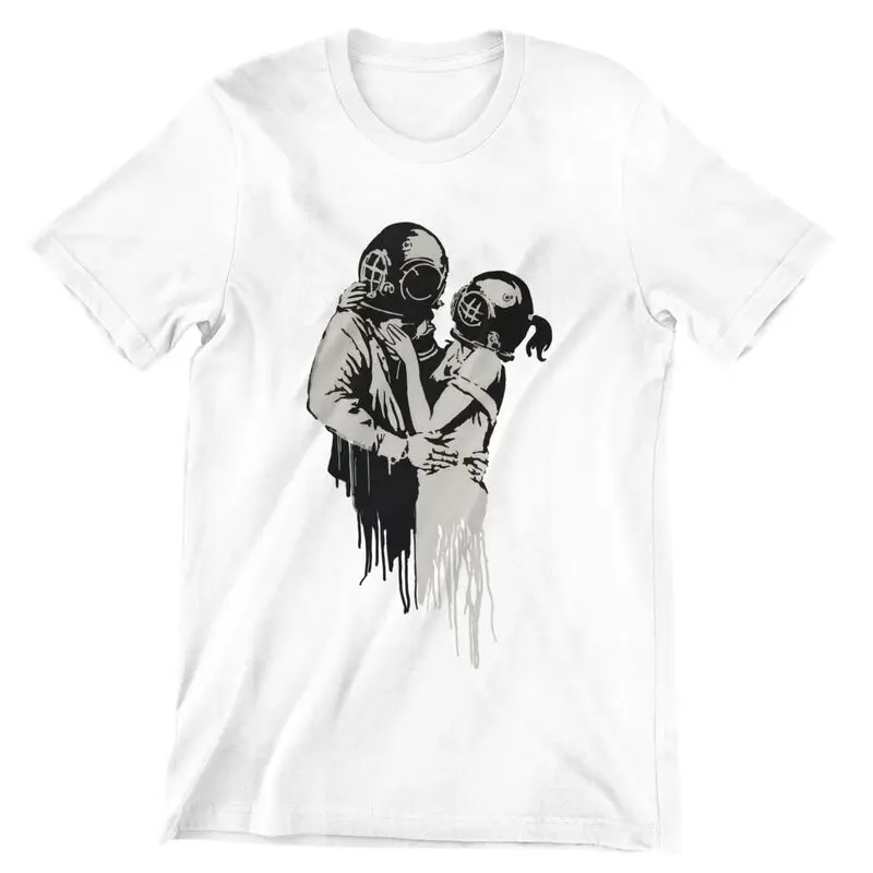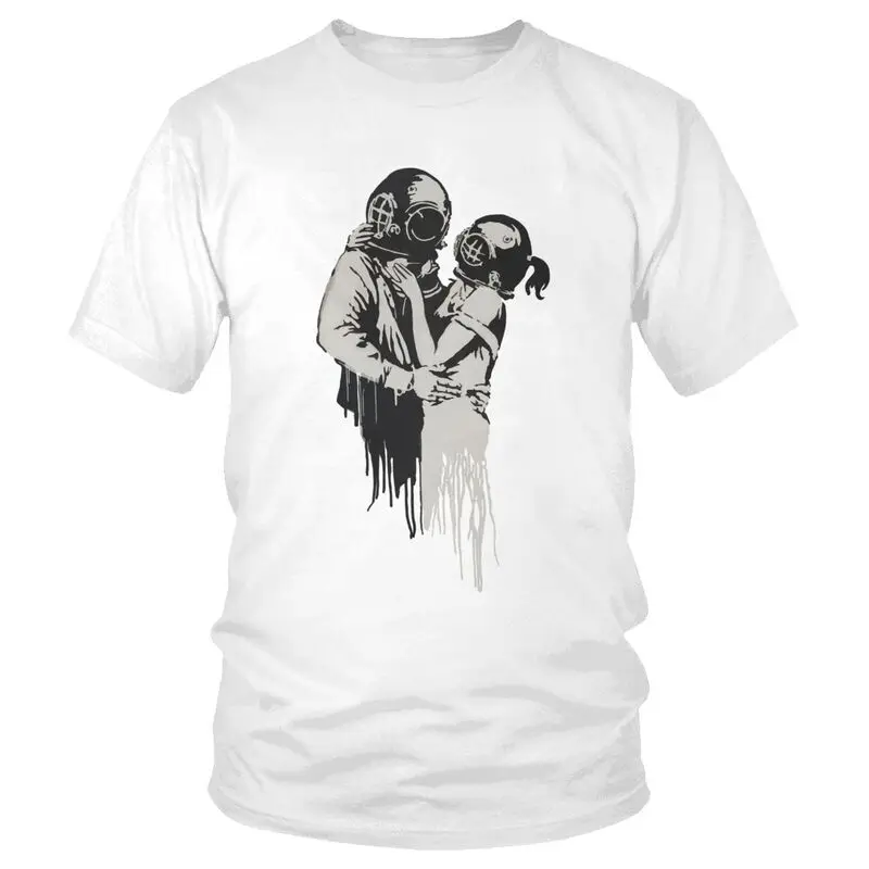 Мужская футболка с надписью Banksy Think, футболка для пары, забавная футболка в стиле поп-арт, уличная футболка с граффити, крутая футболка с коротким рукавом, хлопковые футболки, топы, идея для подарка