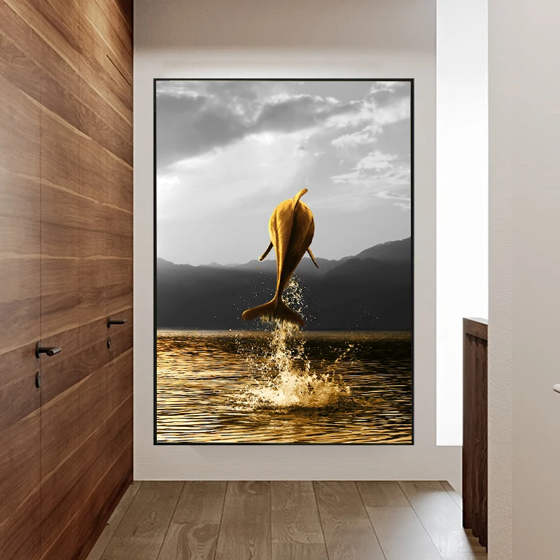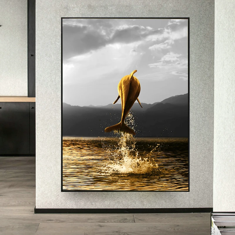 Настенное искусство, Золотой Дельфин, постер с животными, картина для гостиной, домашний декор, интерьер
