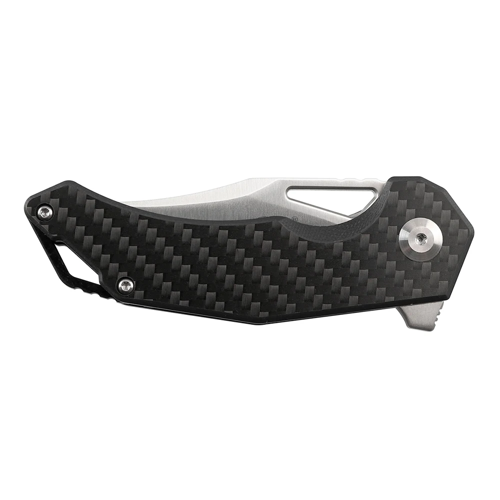 Лезвие ножа извлекается при помощи незначительного отверстия под большой палец у основания, а также за счет флиппера с противоскользящими пропилами. Фиксируется клинок благодаря стальному замку типа Liner-Lock.
