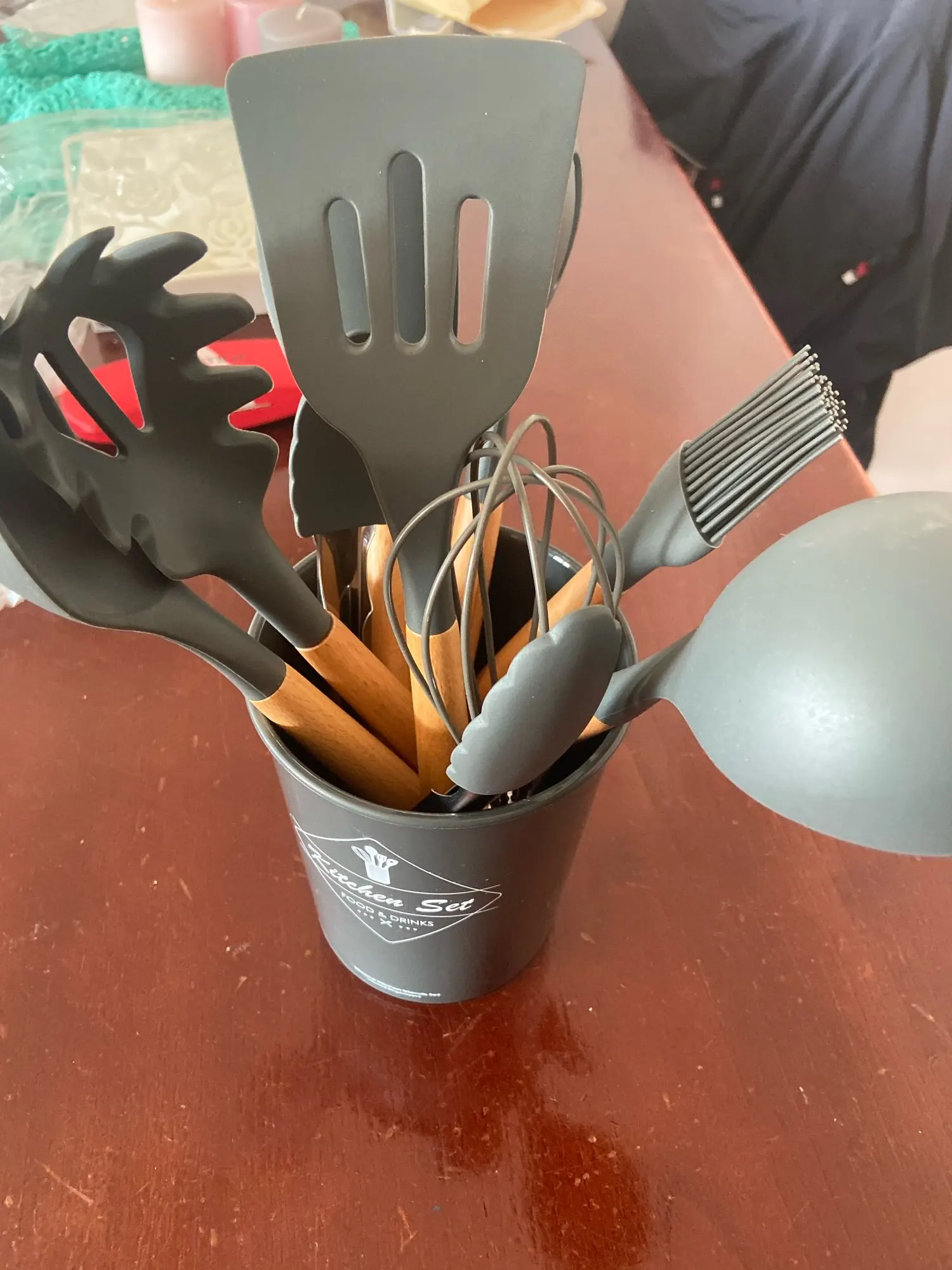 Силиконовая кухонная утварь, набор кухонной утвари, антипригарная посуда, лопатка черпак, измельчители яиц, деревянная ручка, набор кухонных принадлежностей