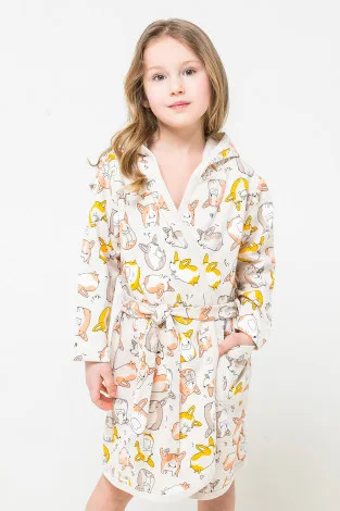 CROCKID, халат, для девочек, К 5483, корги на св.бежевом меланже