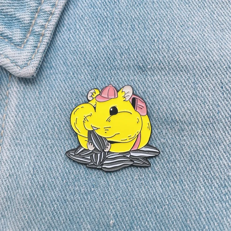 Брошь в виде мультяшного Милого Животного, хомяка, мыши, еды подсолнуха, семена, эмалированная брошь, желтые булавки из сплава, значок, милые аксессуары, ювелирные изделия, подарки