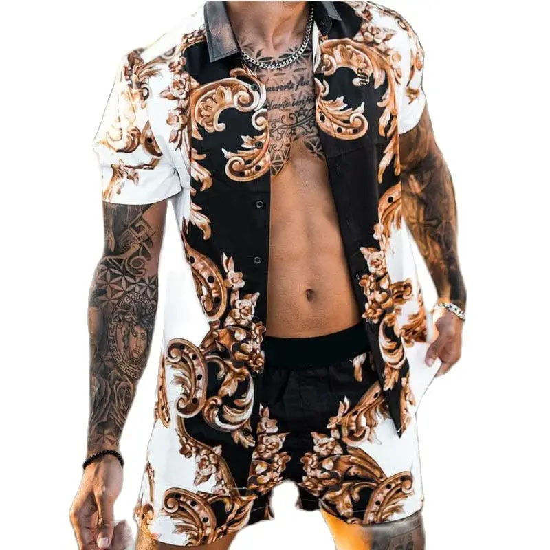Мужской комплект из рубашки и шорт, Повседневная пляжная рубашка с ...