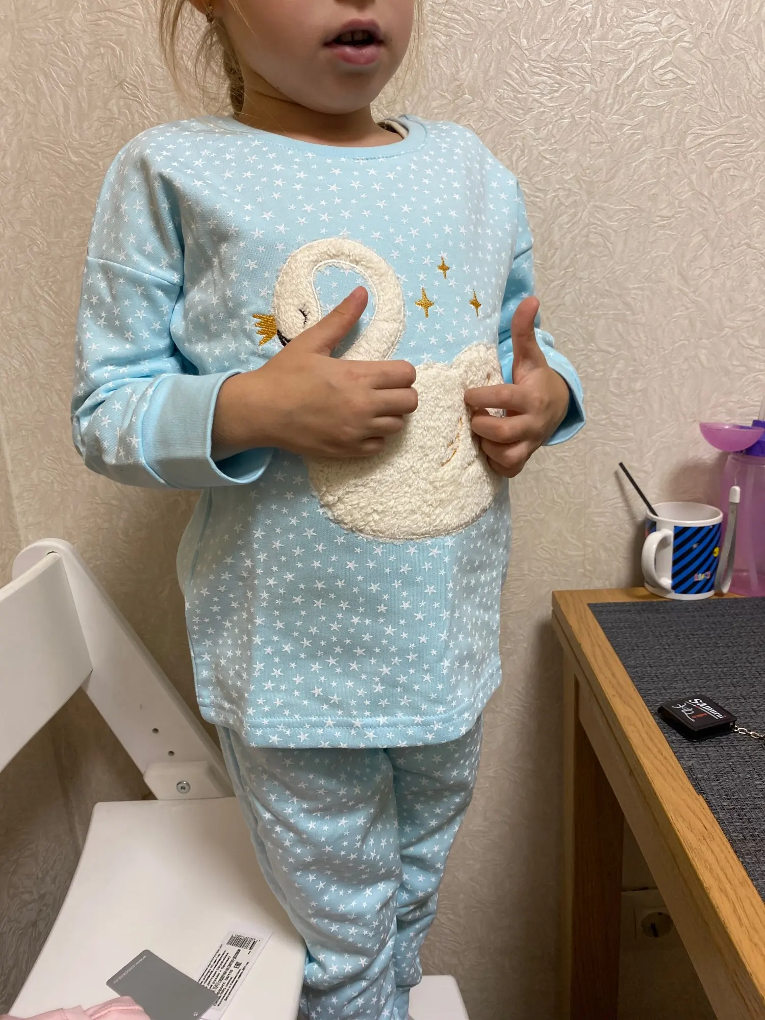 Красивая пижама. Тепленькая. Надеюсь, будет комфортно в ней спать. Брала на вырост.