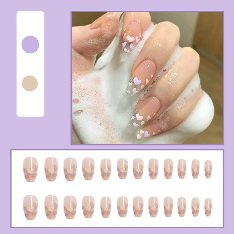 Набор из 24 штук, с рисунком в виде сердечек гроб накладные ногти для ног, съемная полное покрытие Для женщин для Неил арта украшения для кончиков ногтей маникюрный набор накладных ногтей "пригодно для накладных ногтей: